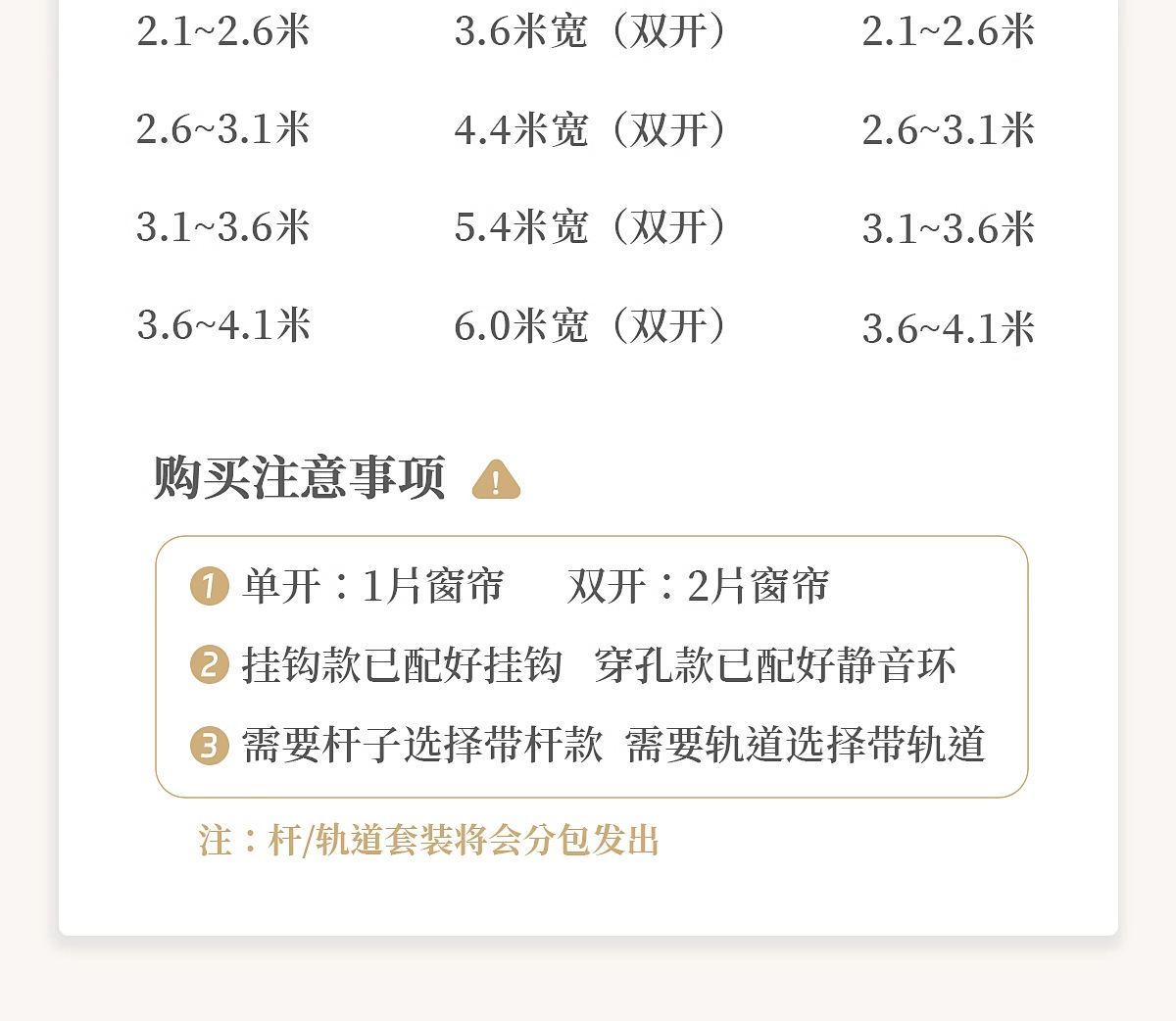 • 벽 폭 3.1-3.6m에 적용 가능 [커튼 높이 2.5m] * 이중 개구부 2개