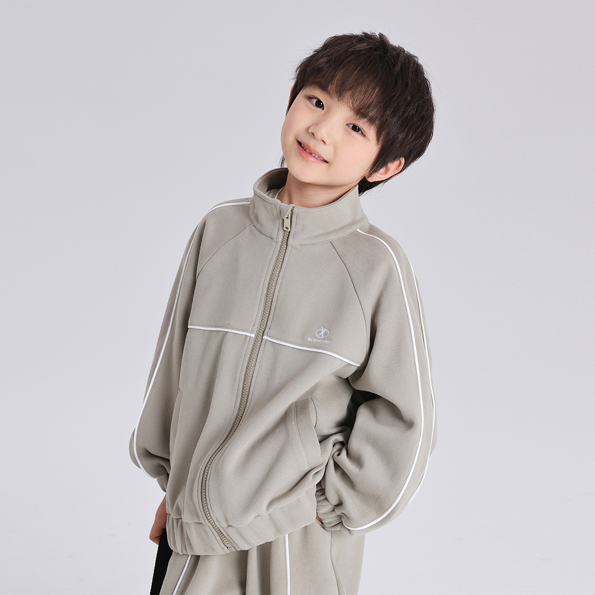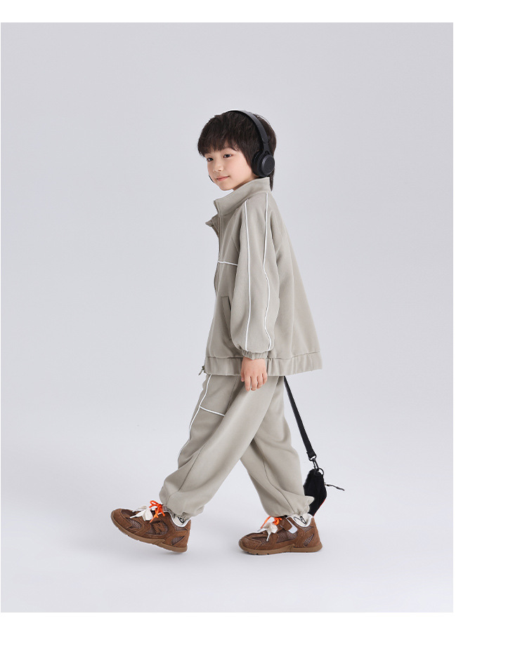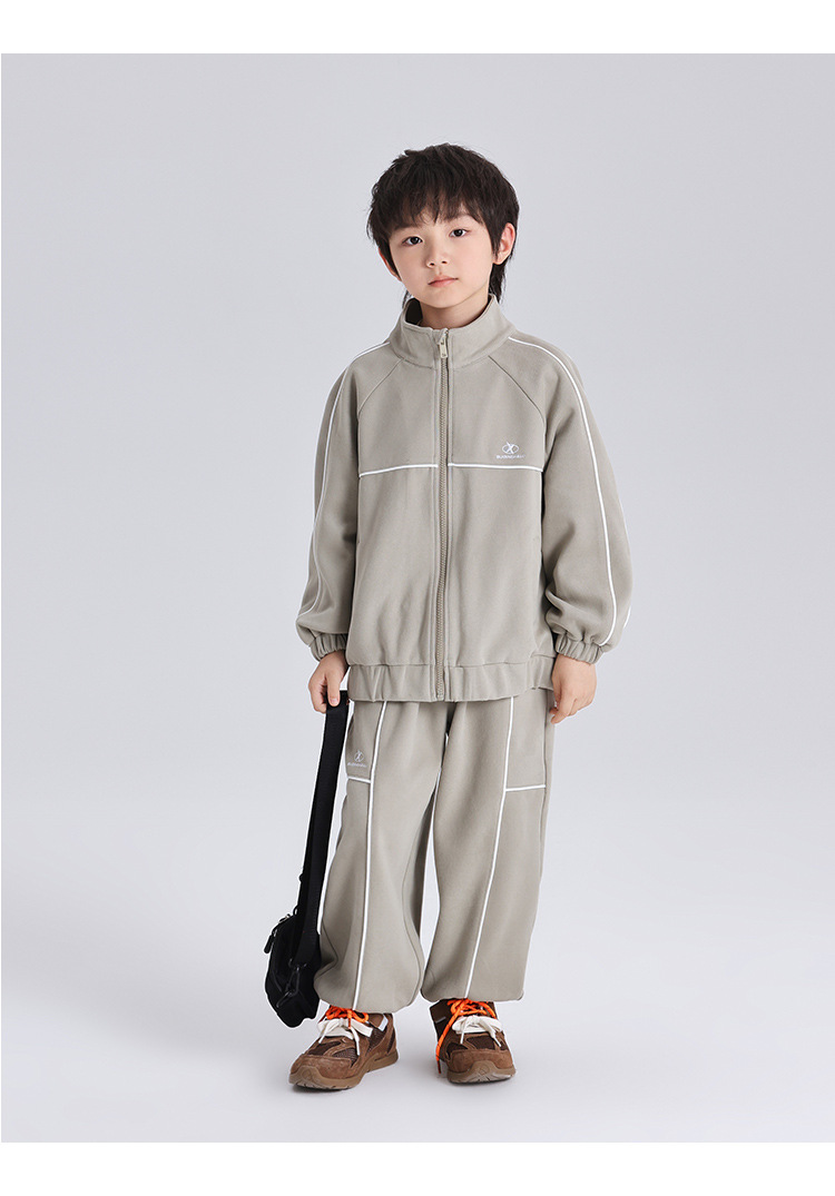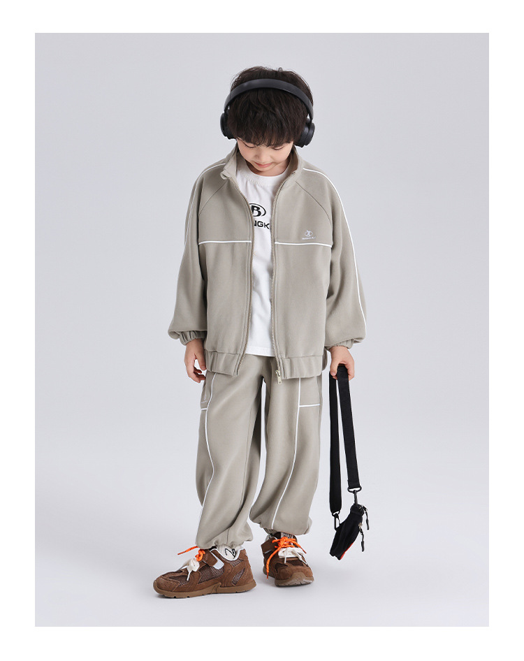 모모가족 아동복 2025 봄/가을 신상 양면 플리스 스포츠 세트 트렌디한 스탠드 칼라 남아 스포츠 세트 캐주얼
