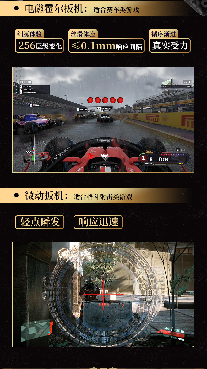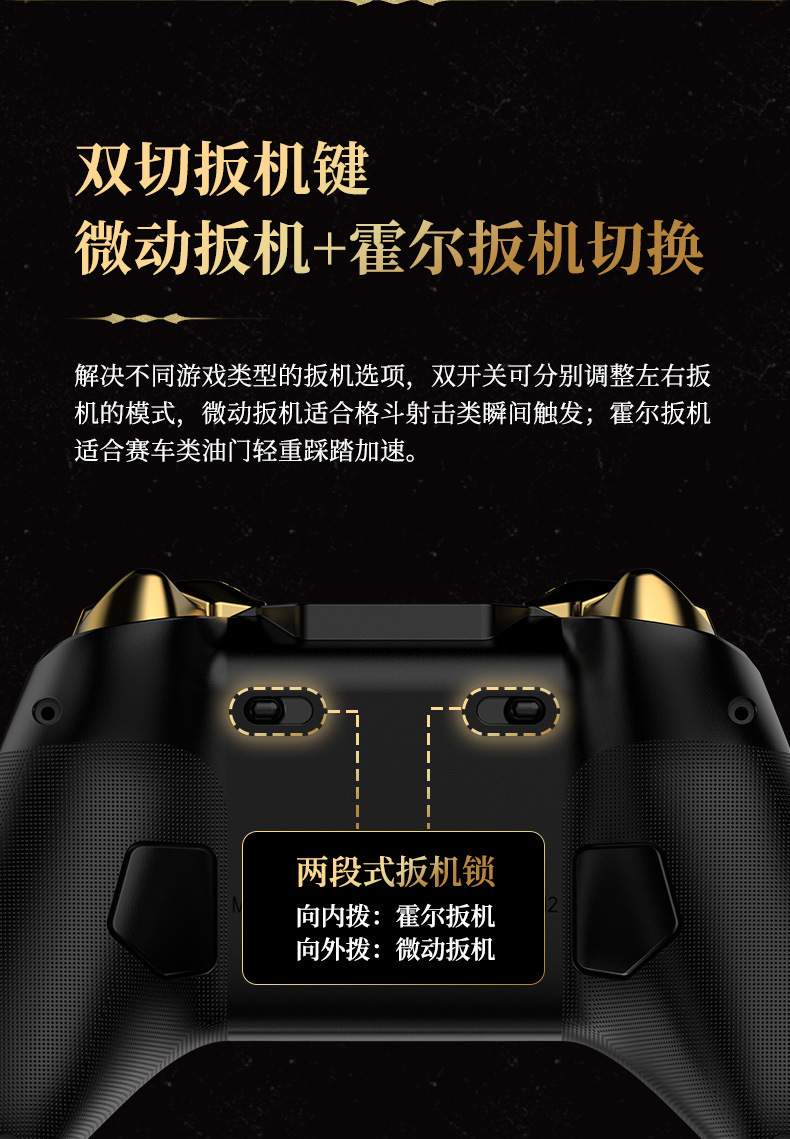 1.搭载霍尔摇杆、双切扳机键:微动扳机+霍尔扳机切换;