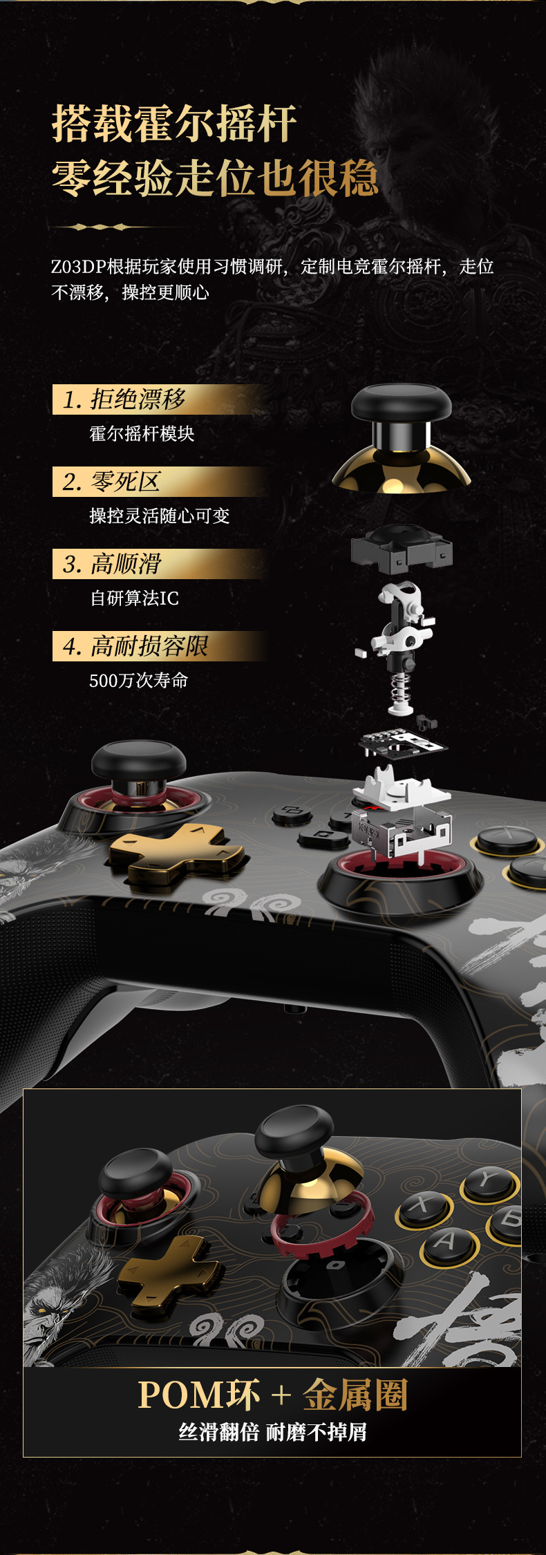 双摇杆配备POM环+金属圈,丝滑翻倍,耐磨不掉。