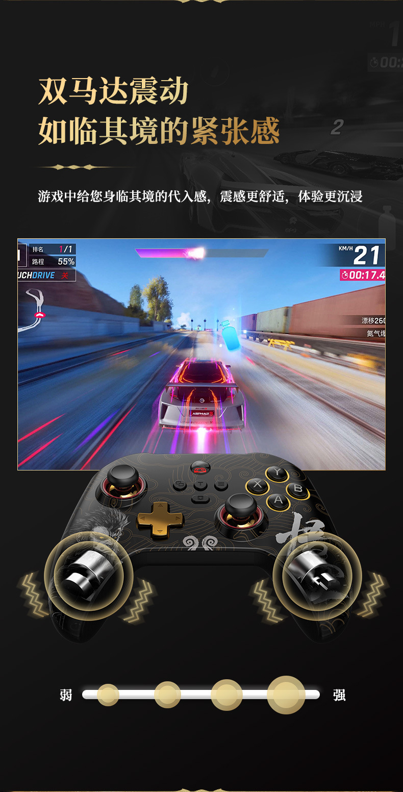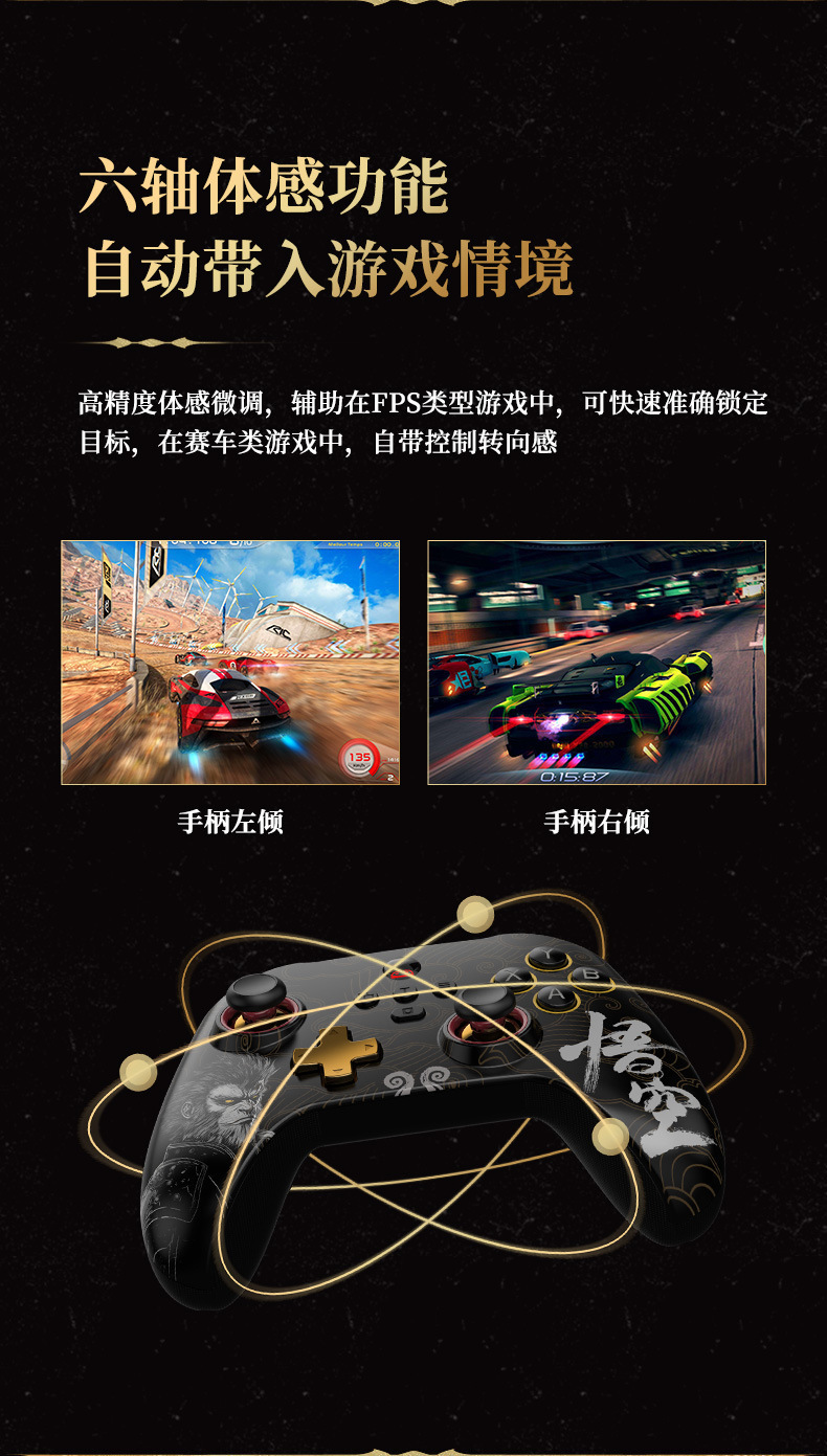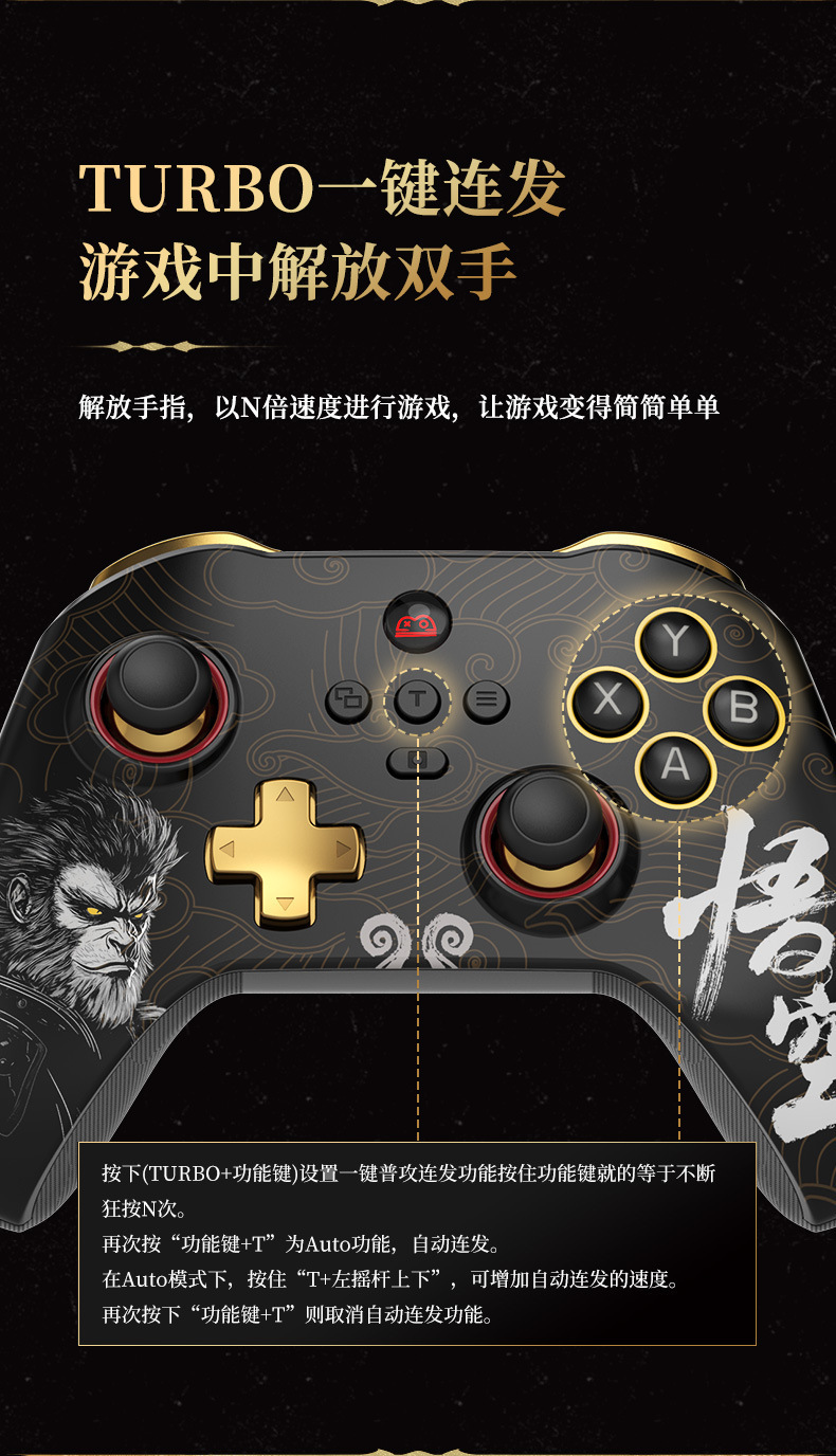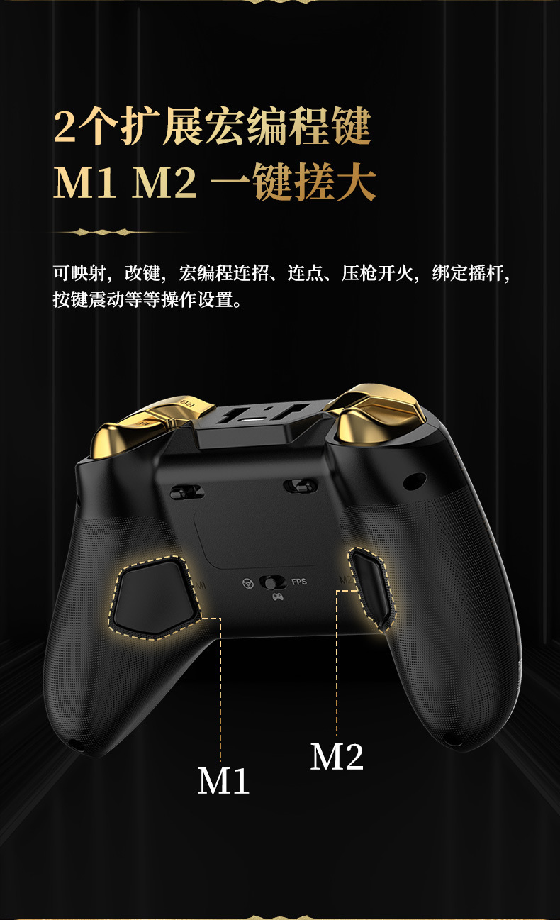 3.支持宏编程、六轴体感、双马达震动、TURBO连发功能。