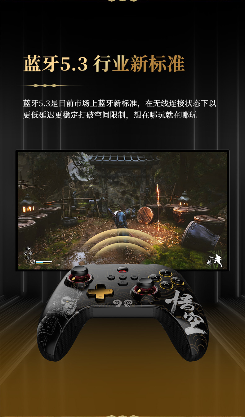 5.蓝牙5.3使手柄在无线连接状态下以更低延迟更稳定打破空间限制。