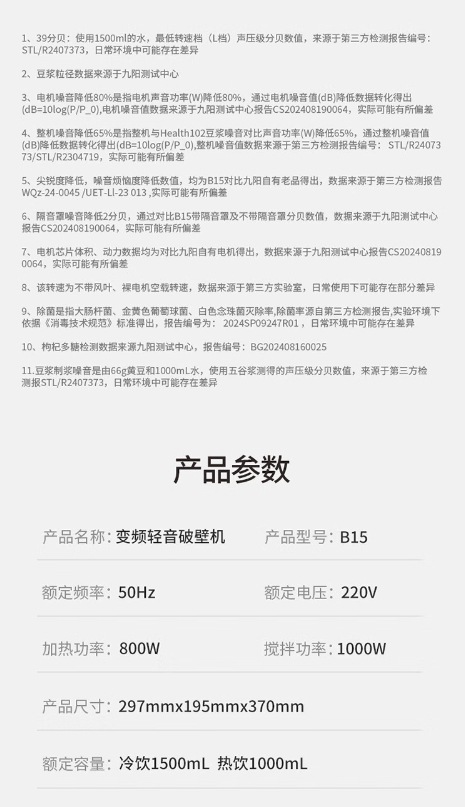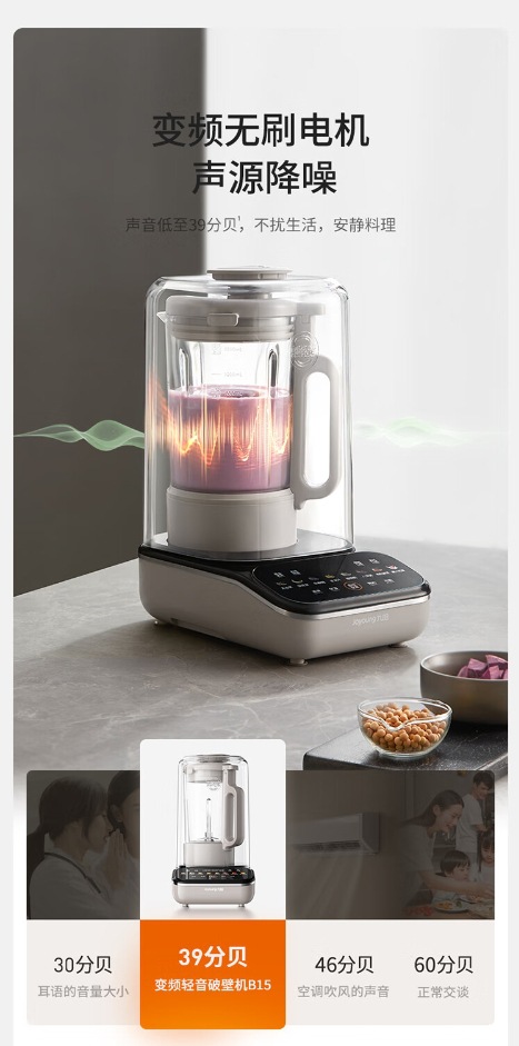 Jiuyang 주파수 변환 베이스 벽 속보 기계 가구 두유 기계 다기능 Juicer 1.5L 용량 다중 소음 감소 B15스토어 가기