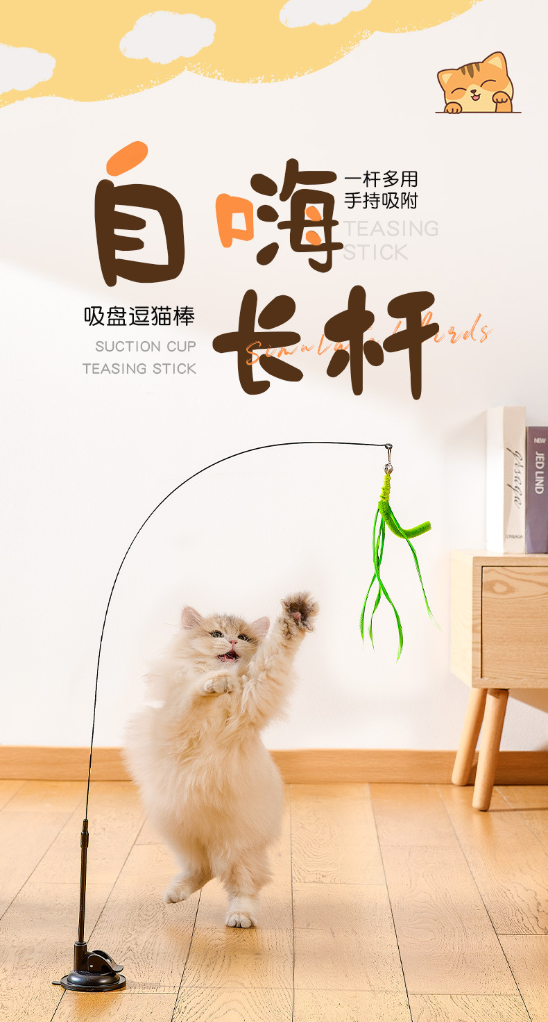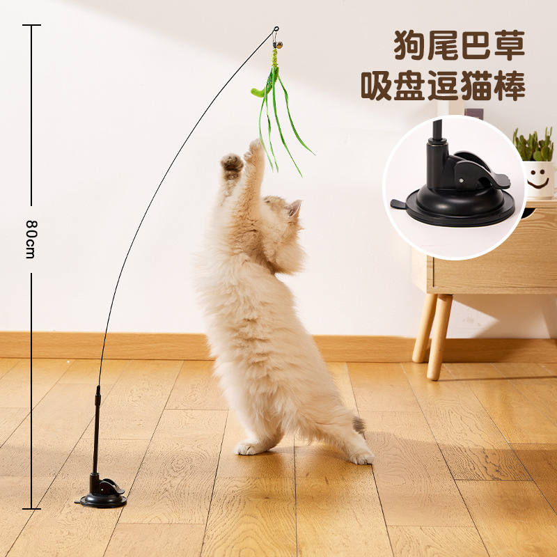 고양이 장난감 시뮬레이션 개 꼬리 잔디 빨판 슈퍼 긴 고양이 테이 폴 깃털 폴 스틸 와이어 고양이 장난감 깃털 테이 폴스토어 가기