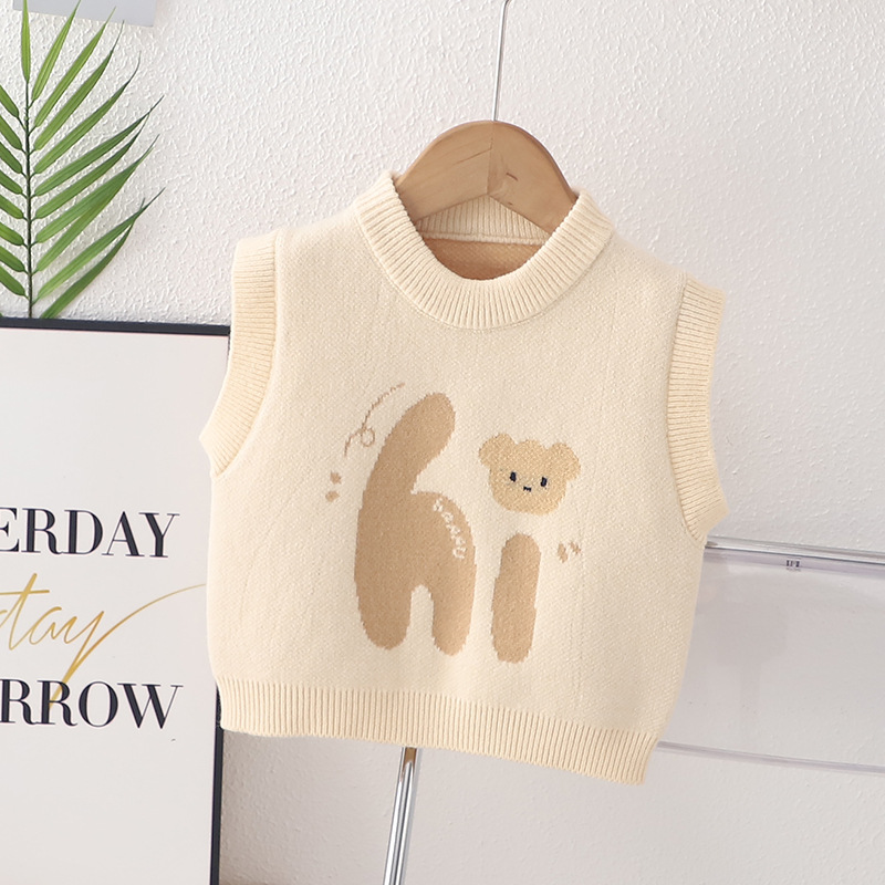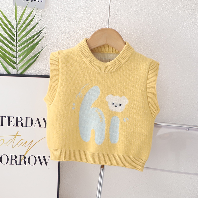 어린이 조끼 소년 소녀 아기 봄과 가을 니트 조끼 어린이 유아 0-5 세 웨이스트 코트 스웨터 착용 만화 내부스토어 가기