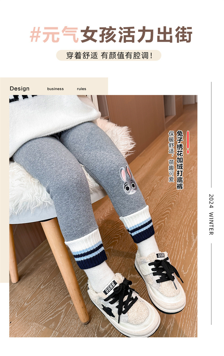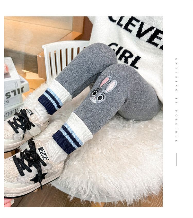 여자 기모 바지 2024 새로운 가을과 겨울 서양식 유행 아기 소녀 어린이 겨울 만화 바지스토어 가기
