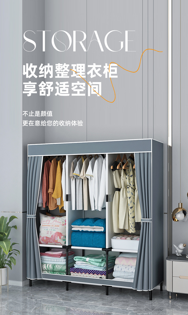 가정용 침실용 간단한 옷장 내구성이 뛰어난 조립식 기숙사 천 옷장 임대 주택 바닥 선반 소형 수납 캐비닛