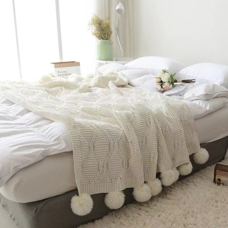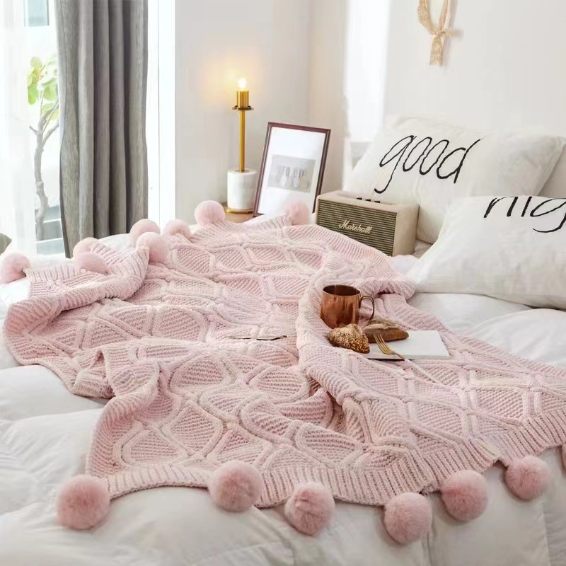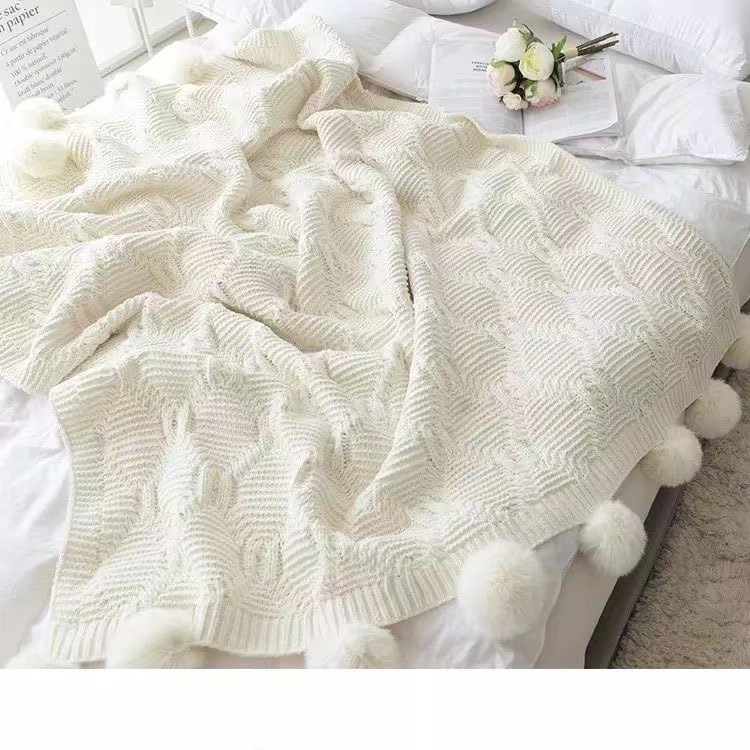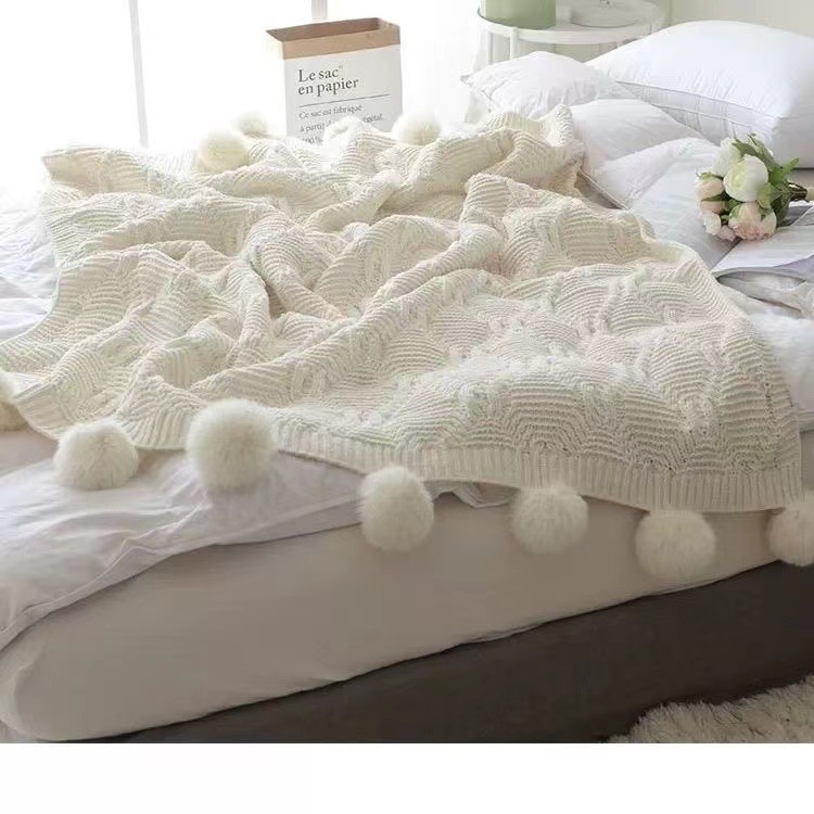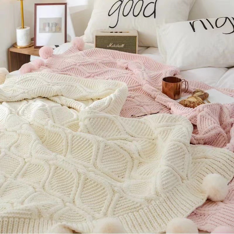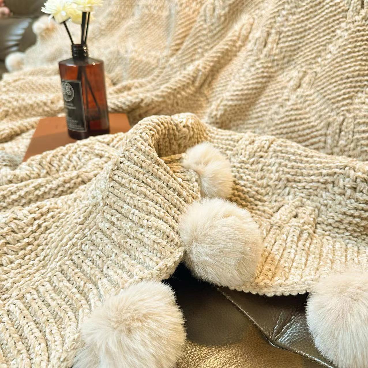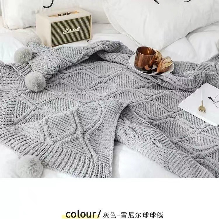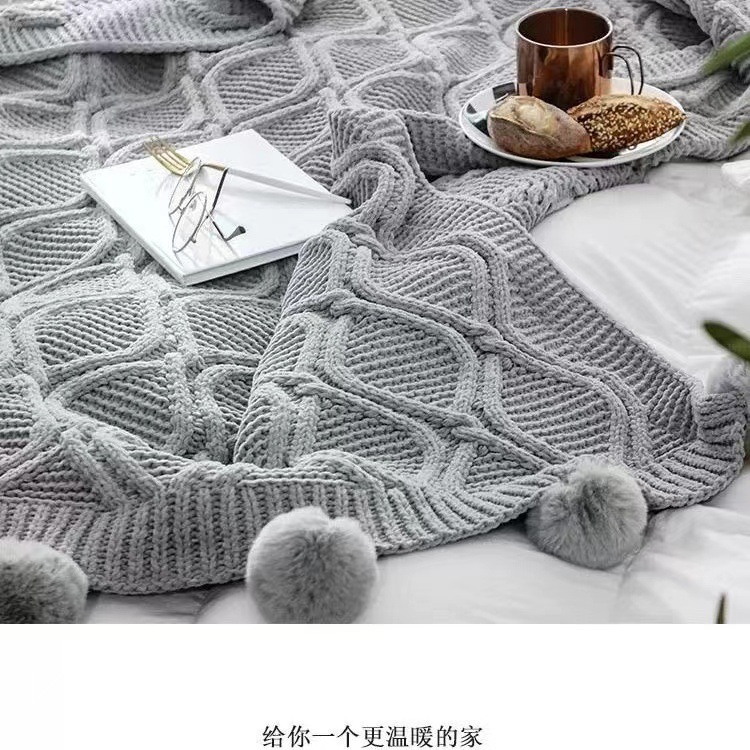 북유럽 소파 담요 두꺼운 담요 목도리 라이트 럭셔리 니트 울 담요 침대 끝 담요 장식 볼 담요