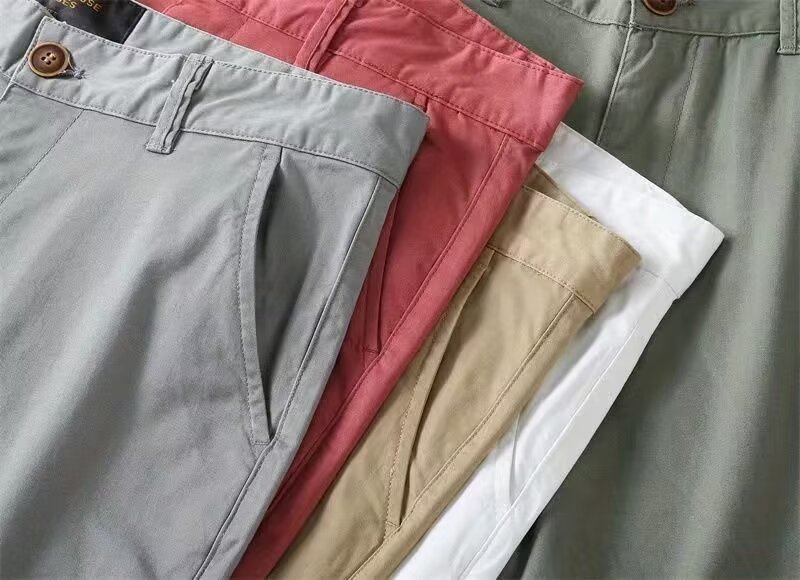 여름 새로운 면 쿼드 바지 남성용 캐주얼 슬림 핏 스트레이트 툴링 반바지 비치 팬츠 플러스 사이즈 마이크로 탄성 반바지스토어 가기