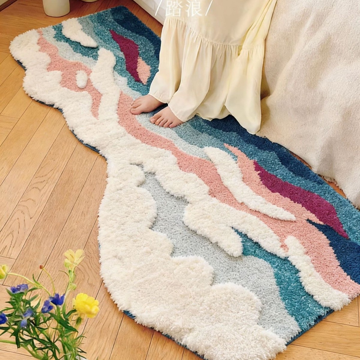 욕실 바닥 매트 잠금 높고 낮은 헤어 스테레오 3D 모리 녹색 꽃 문 매트 물 흡수 매트 화장실 발 매트스토어 가기
