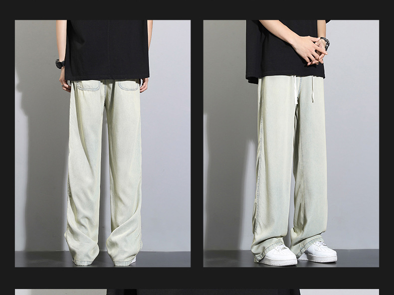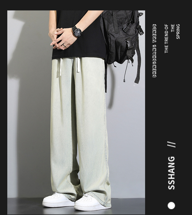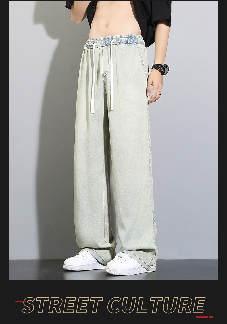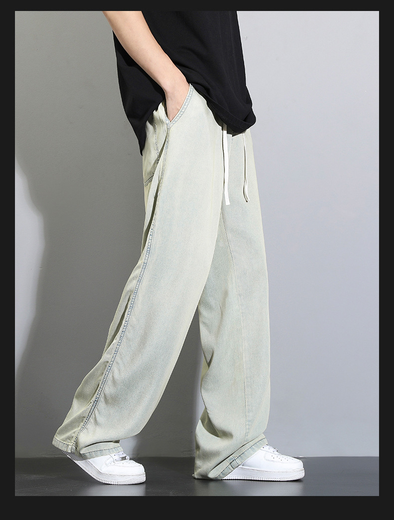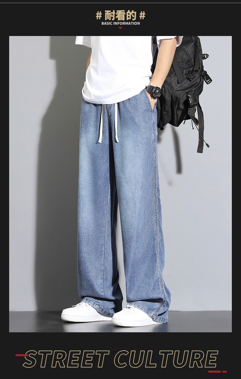 Tencel dipped 청바지 남자 여름 얇은 2025 새로운 복고풍 느슨한 스트레이트 아이스 실크 넓은 다리 캐주얼 바지스토어 가기