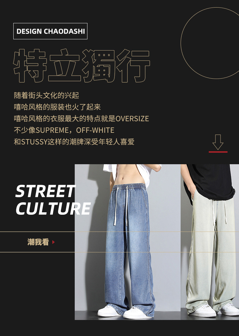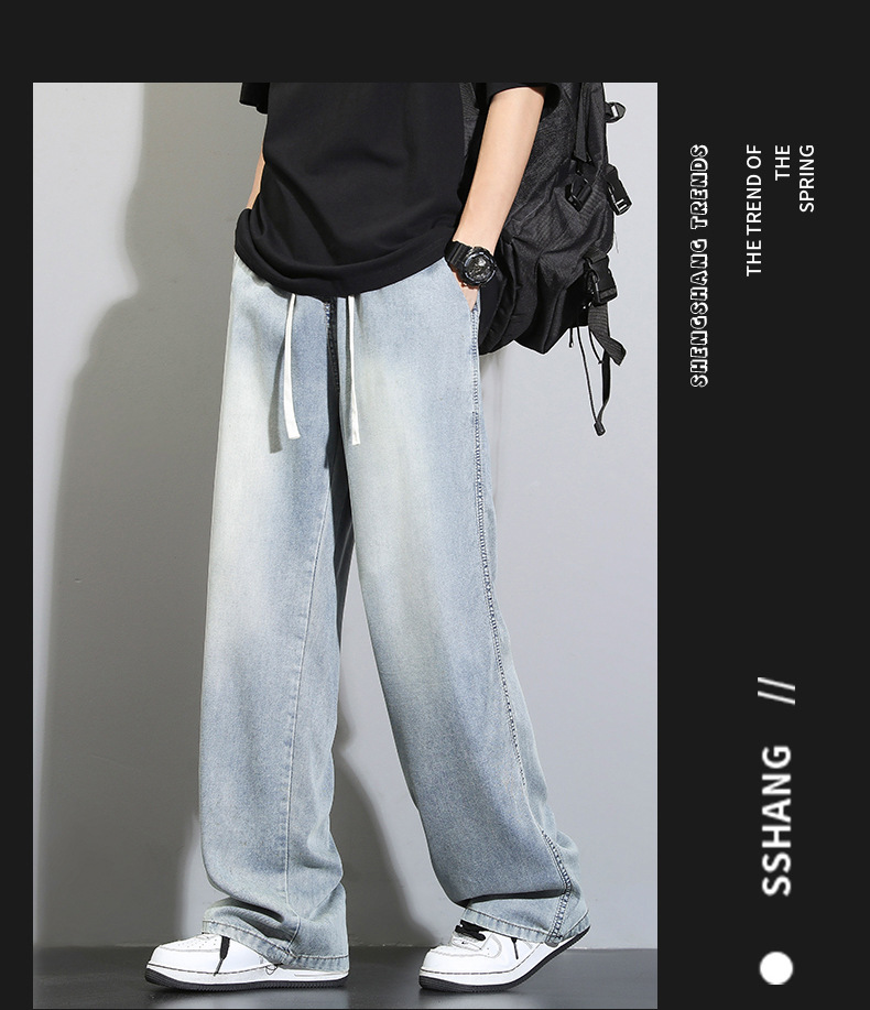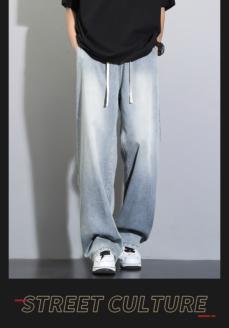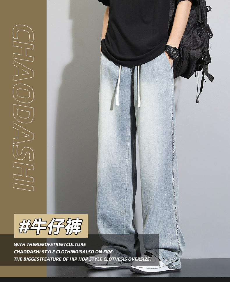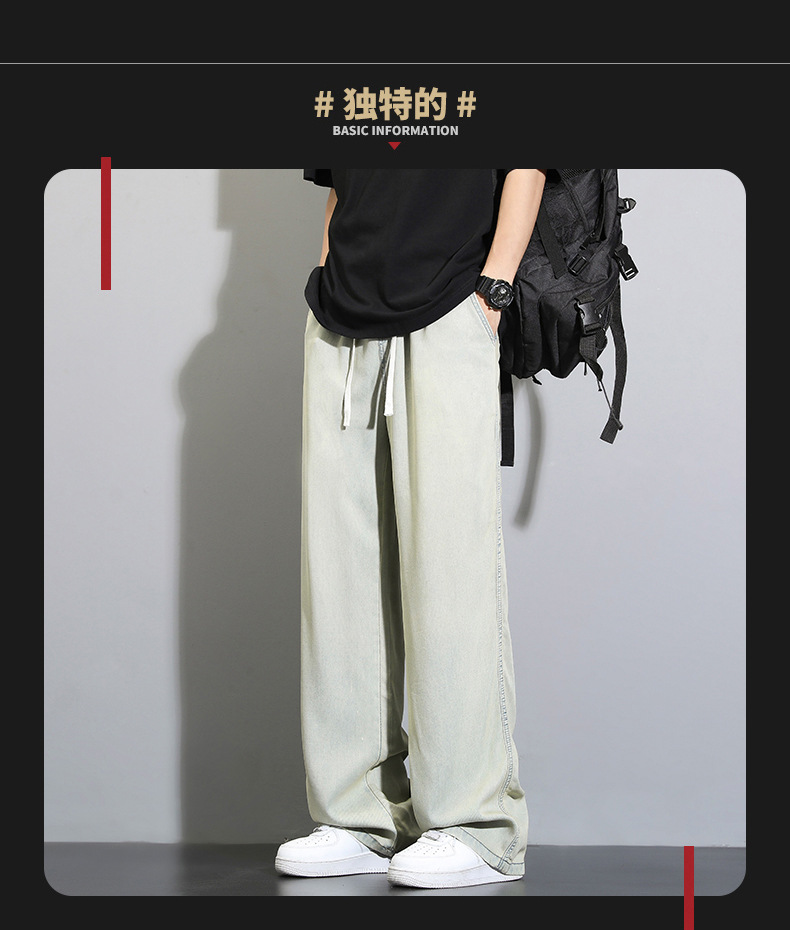 Tencel dipped 청바지 남자 여름 얇은 2025 새로운 복고풍 느슨한 스트레이트 아이스 실크 넓은 다리 캐주얼 바지스토어 가기