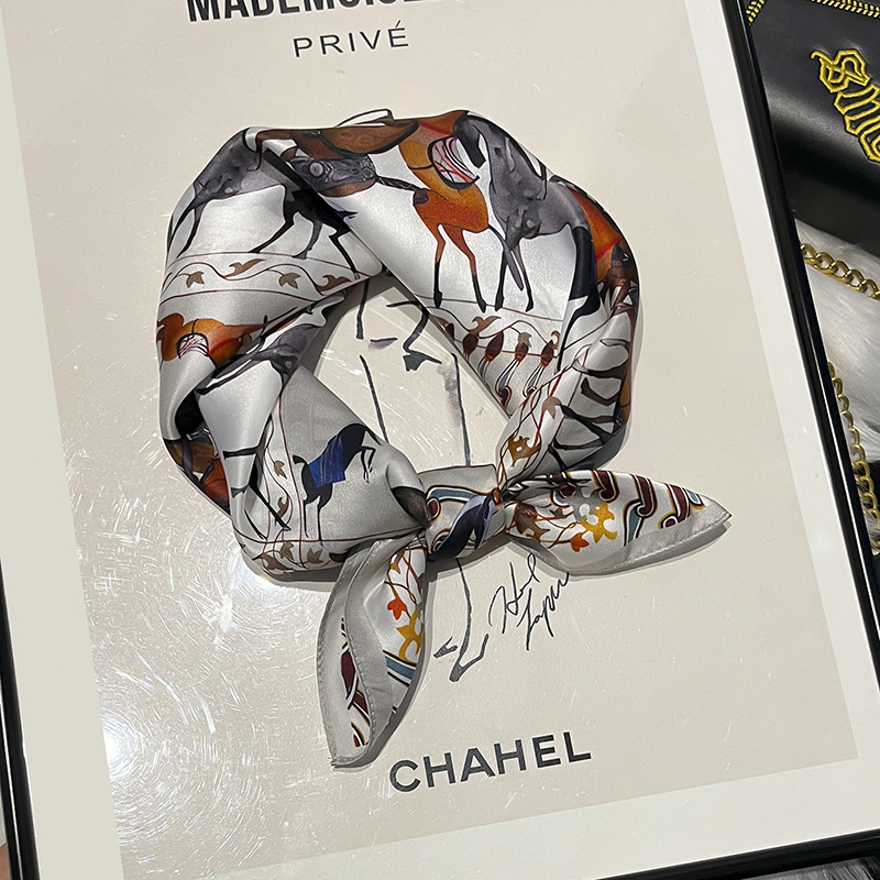2024 실크 스카프 여성용 봄 여름 패션 프린트 100% 뽕나무 실크 스카프 한국 스타일 라운드 스카프 라이트 럭셔리스토어 가기