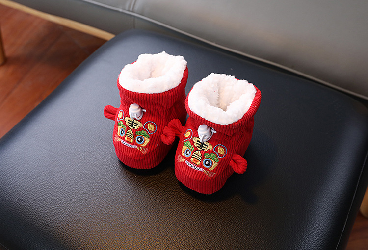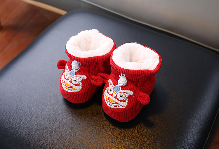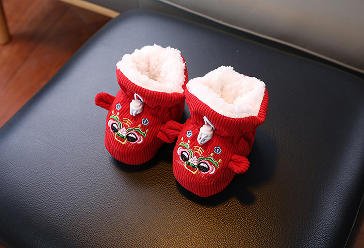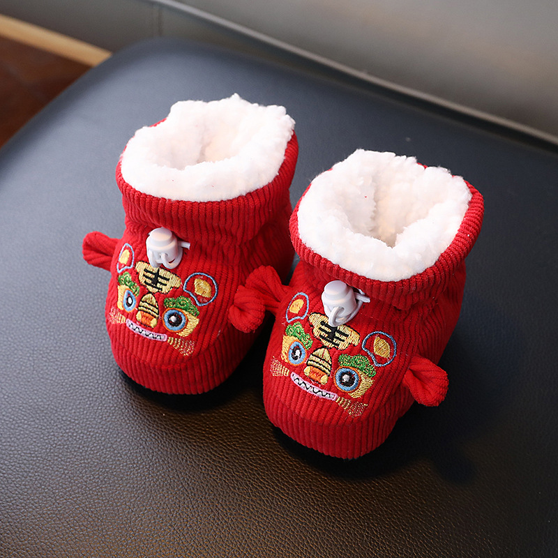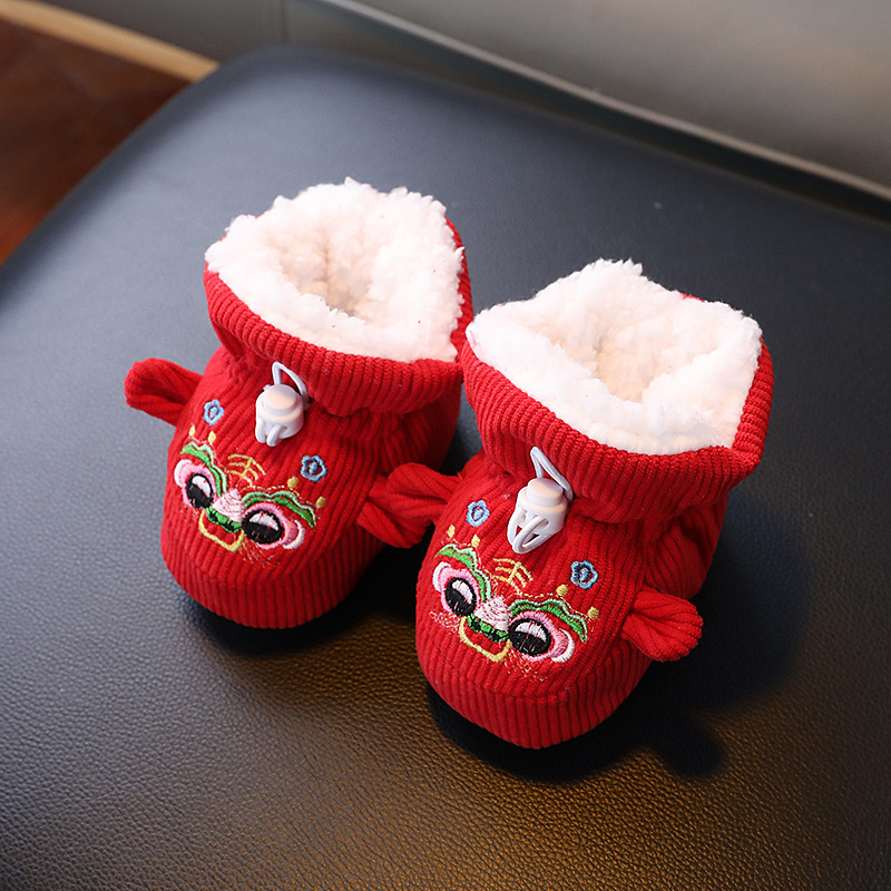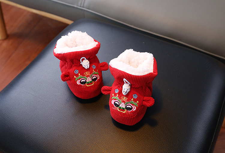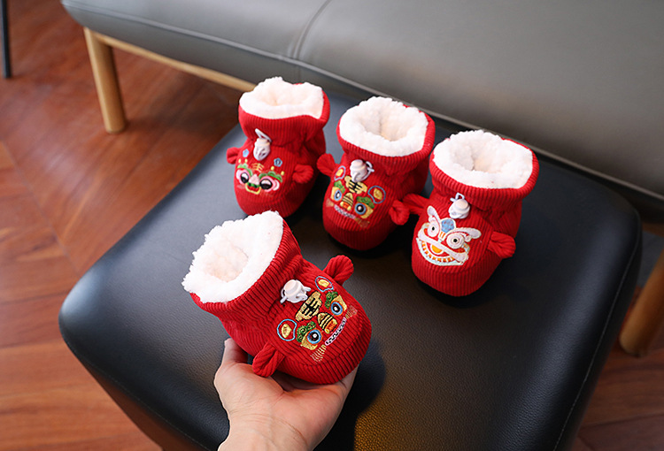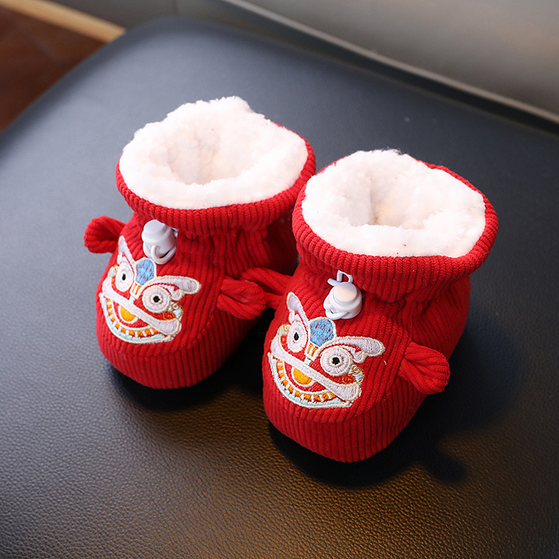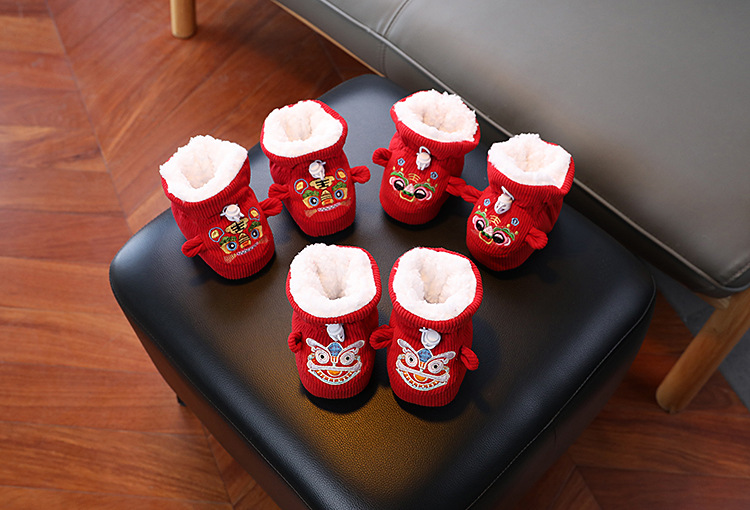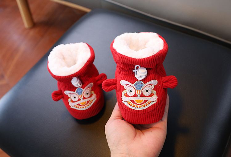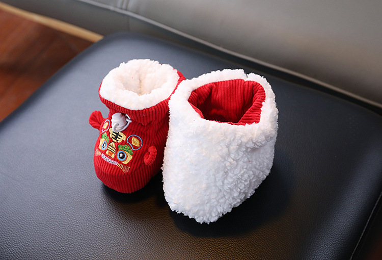 큰 붉은 새해 아기 코튼 신발 가을과 겨울 기모 두꺼운 따뜻한 신발 커버는 유아 호랑이 머리 신발 1 년 된 아기스토어 가기