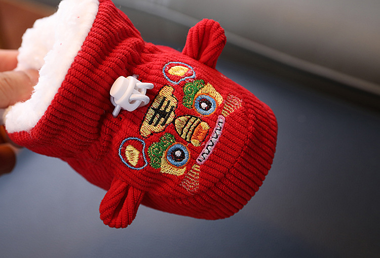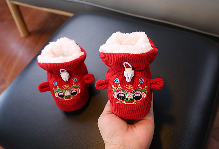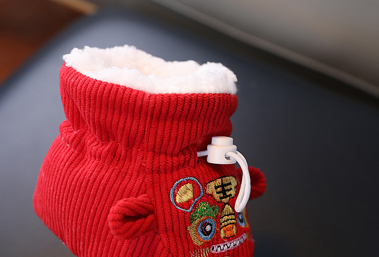 큰 붉은 새해 아기 코튼 신발 가을과 겨울 기모 두꺼운 따뜻한 신발 커버는 유아 호랑이 머리 신발 1 년 된 아기