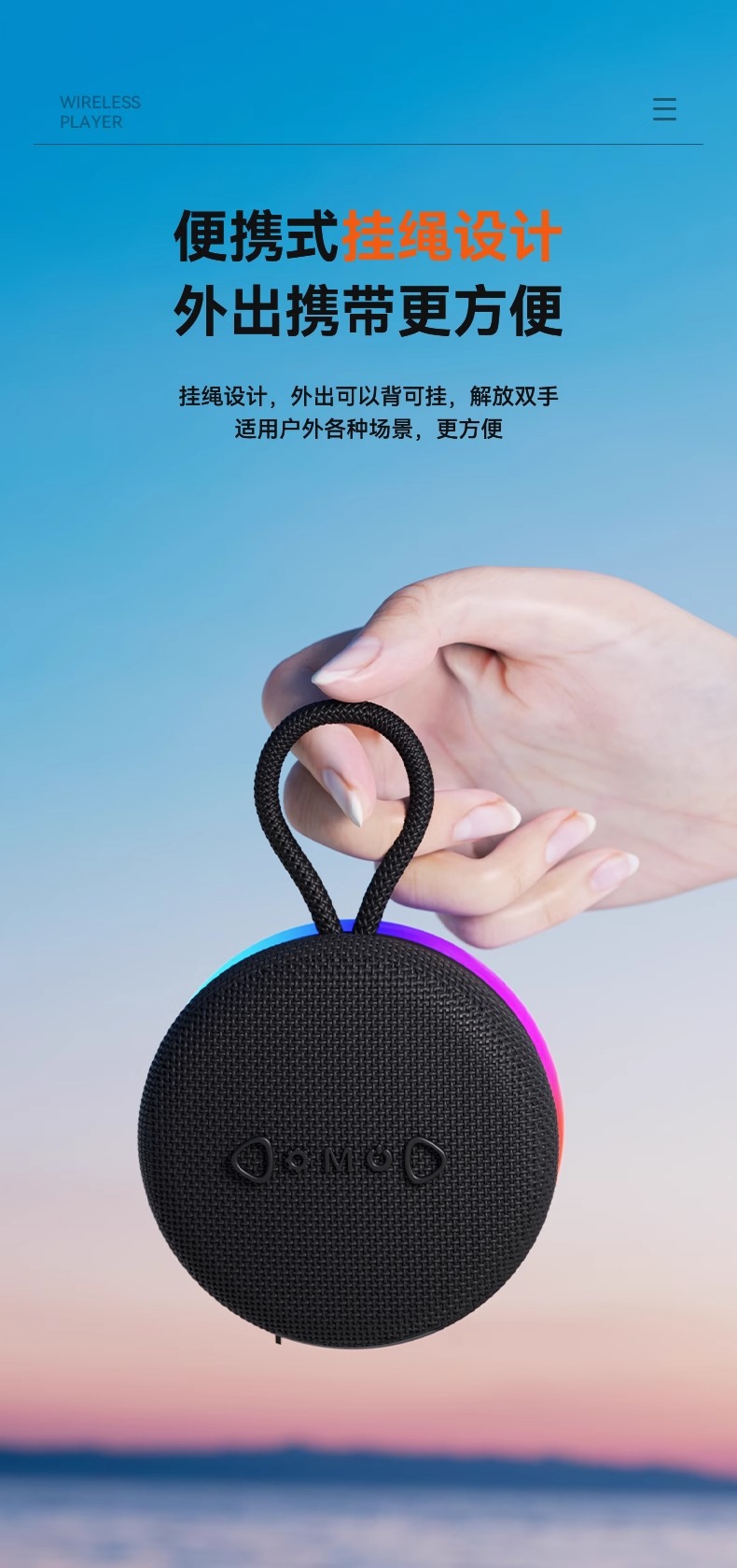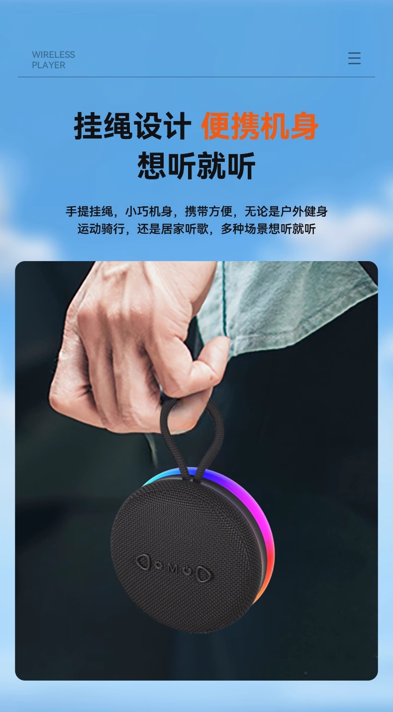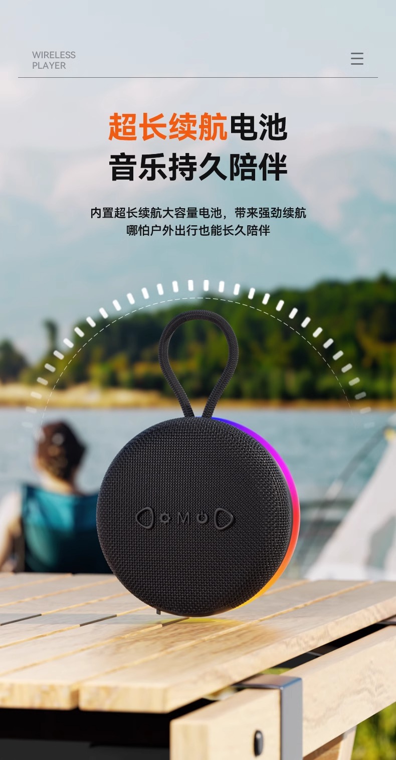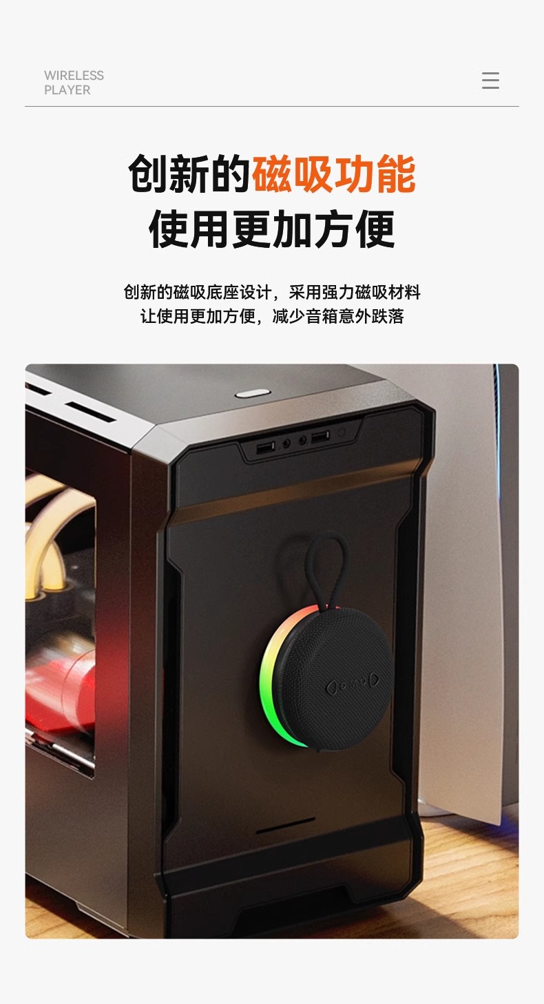 야외용 휴대용 미니 블루투스 스피커, 강력한 베이스 서브우퍼, 매우 긴 배터리 수명, 데스크탑 자석식 블루투스 스피커