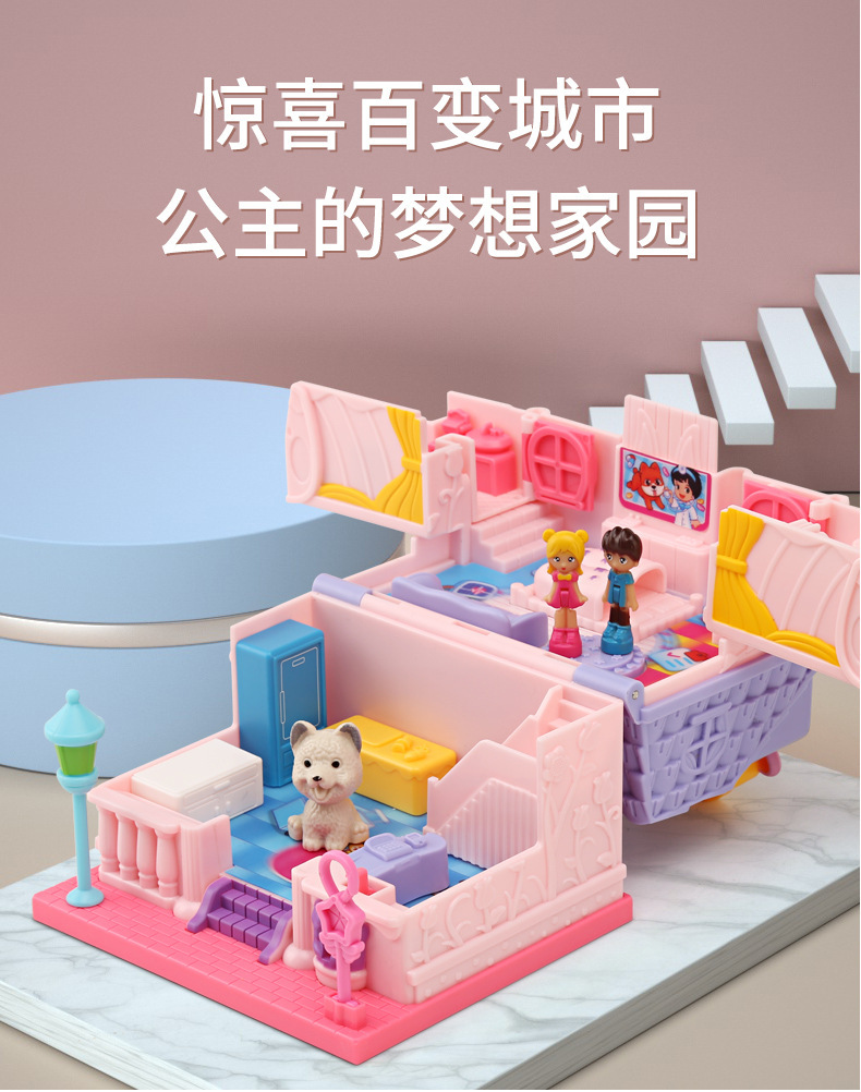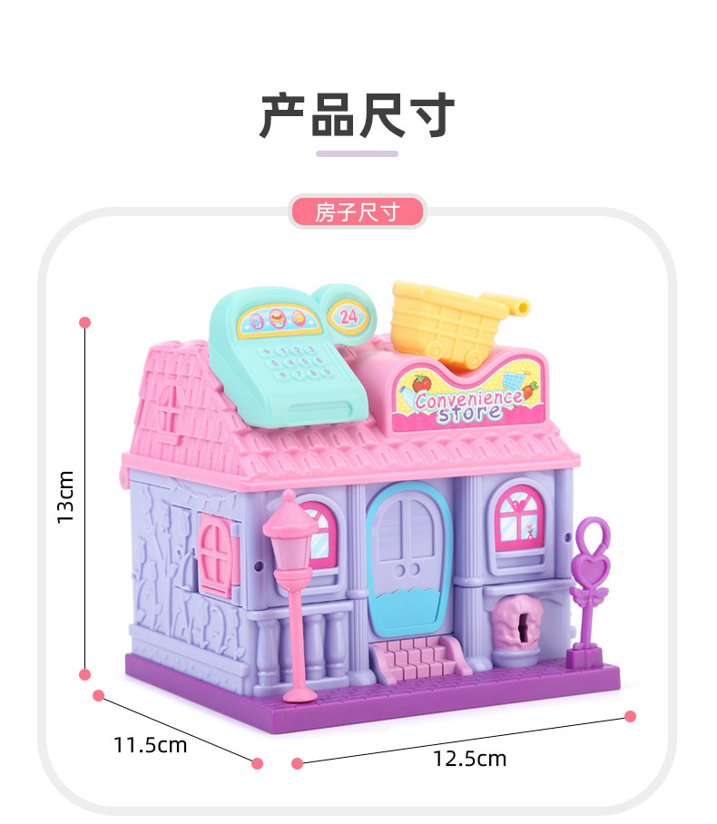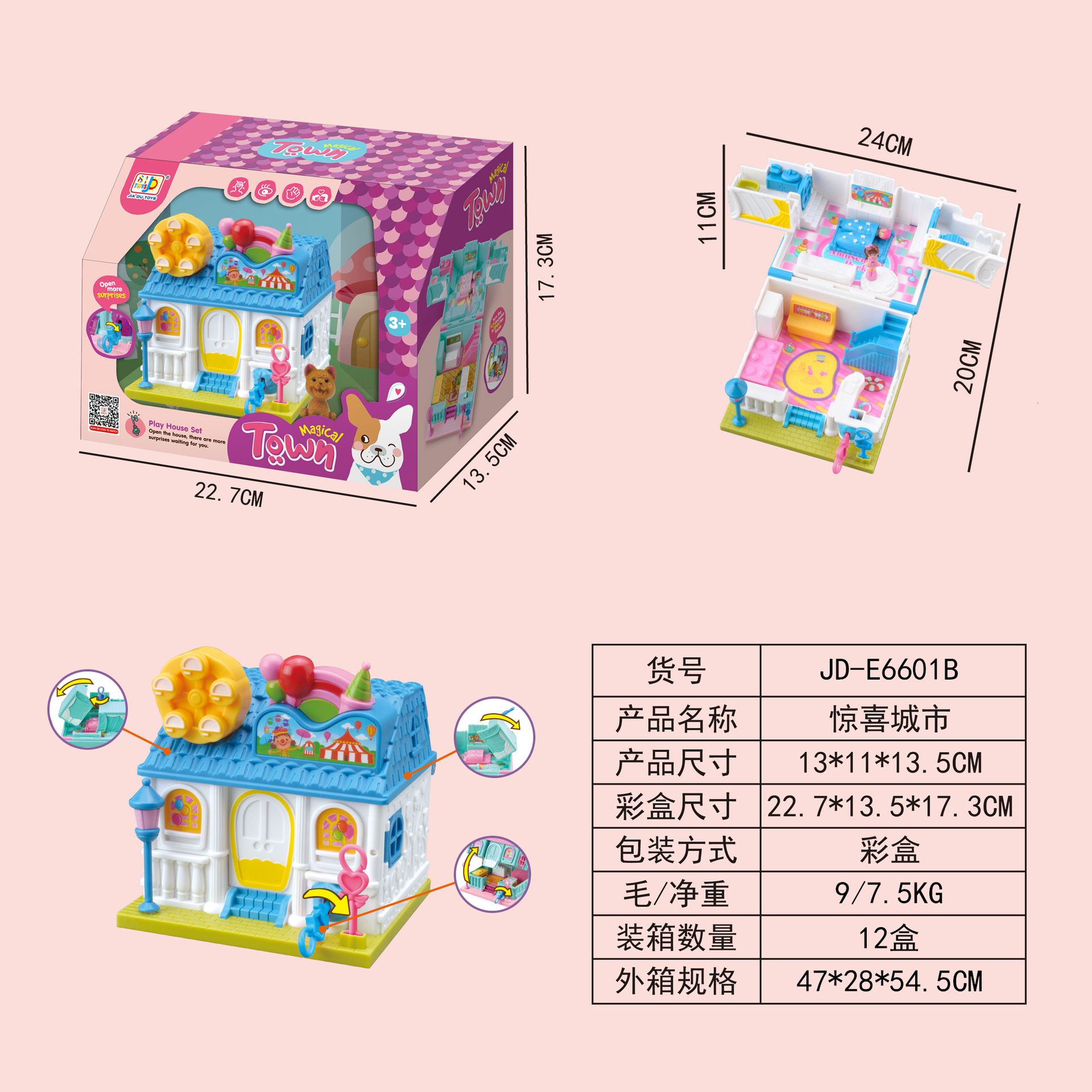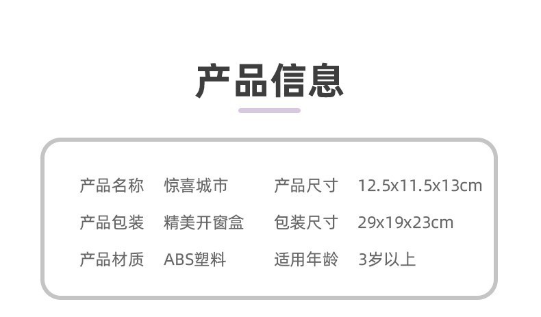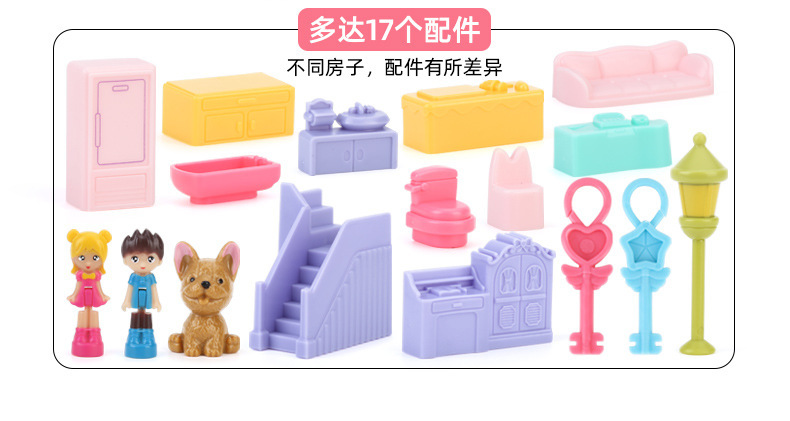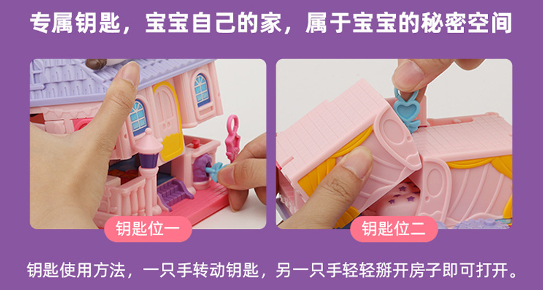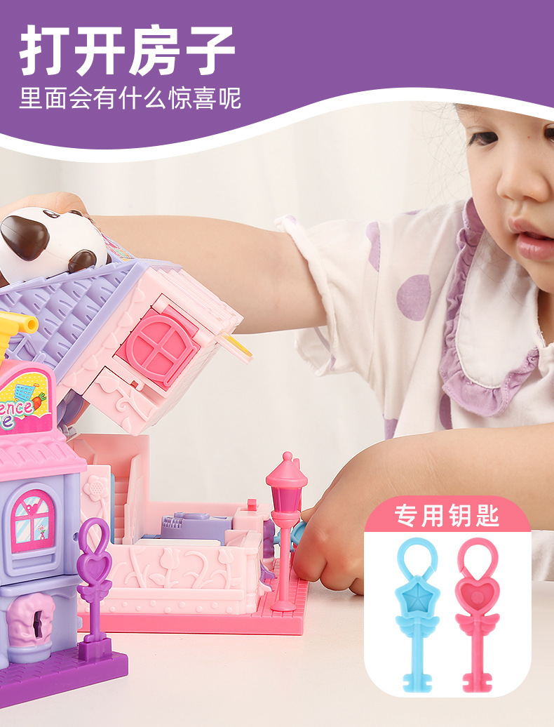 功能:房子的底部适应各种大小的积木板。可以打开屋顶,展开房子,每个房间都有惊喜哦。用里面的钥匙解锁惊喜世界吧!
