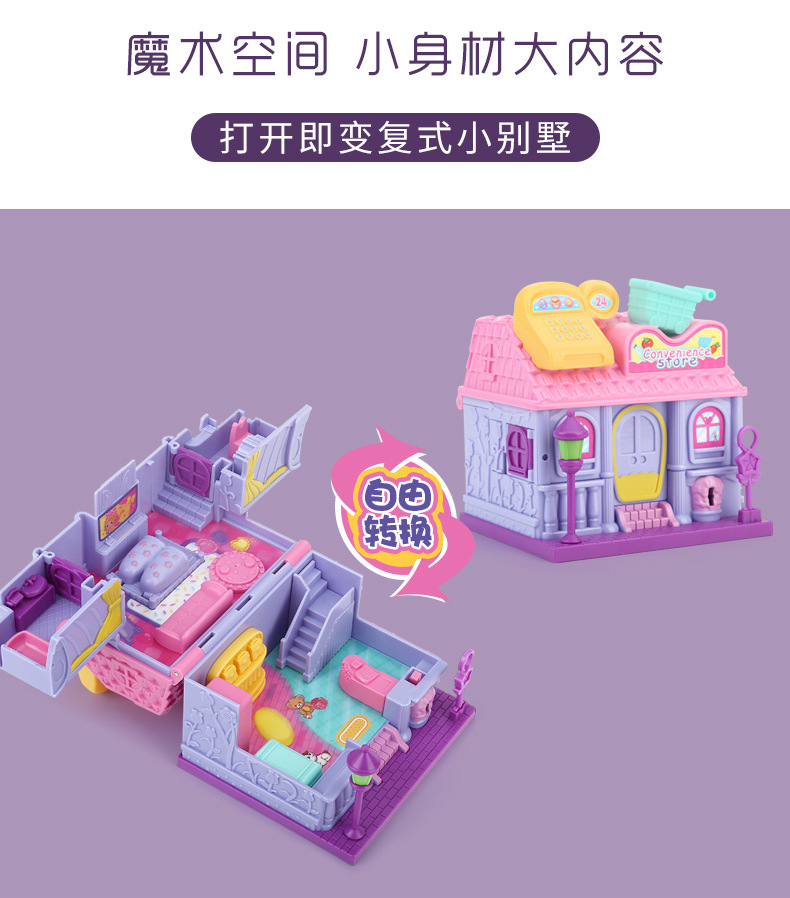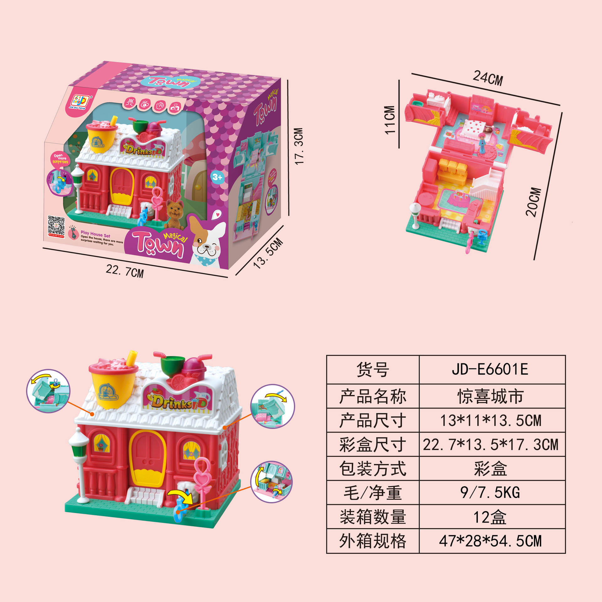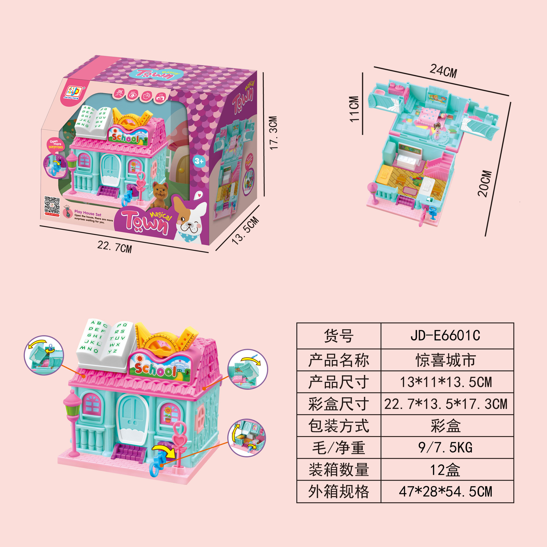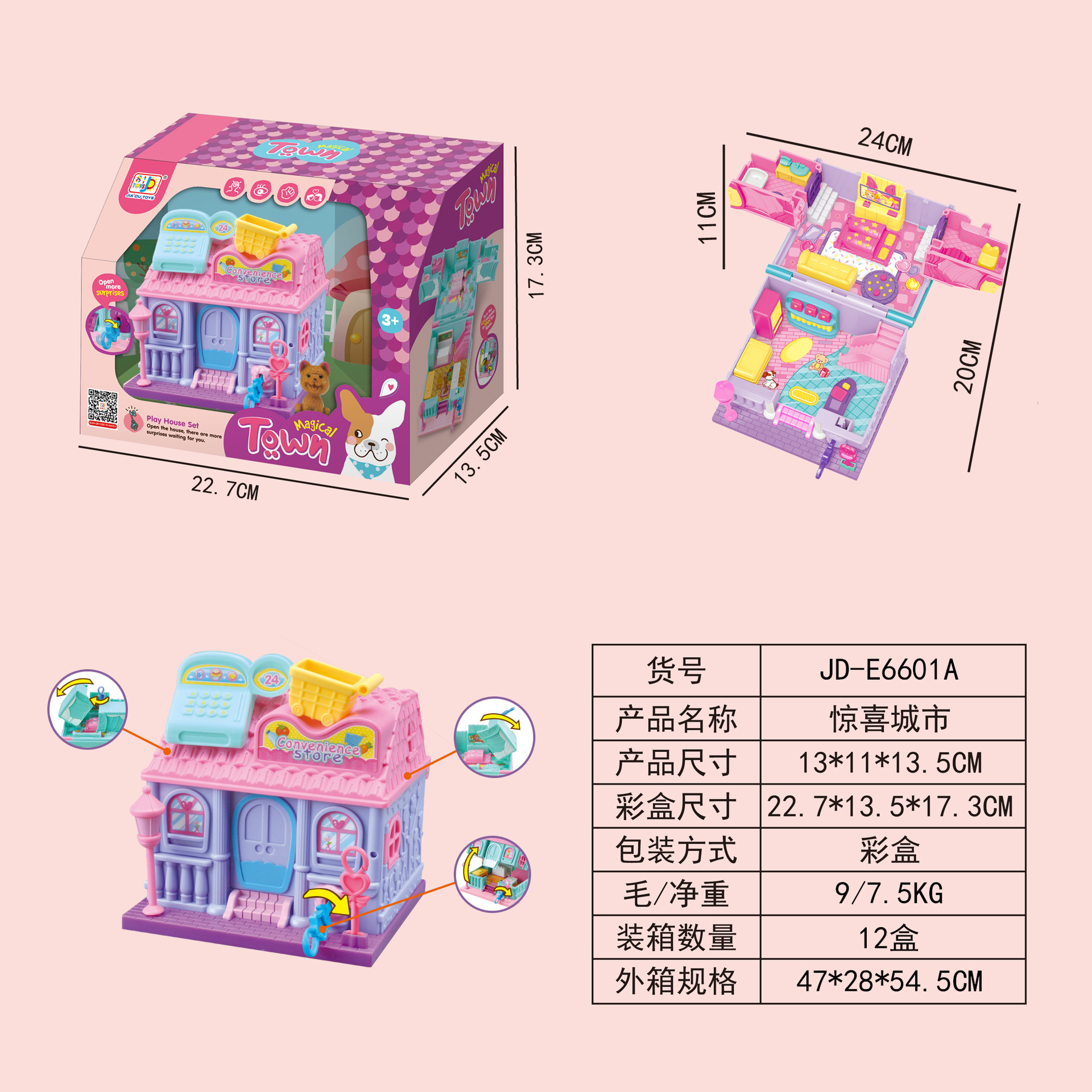 功能:房子的底部适应各种大小的积木板。可以打开屋顶,展开房子,每个房间都有惊喜哦。用里面的钥匙解锁惊喜世界吧!