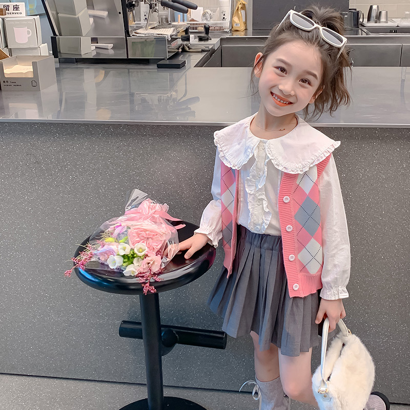 어린이 의류 소녀 스웨터 조끼 가을과 겨울 기모 아기 소녀 양복 조끼 어린이 니트 조끼 B2523
