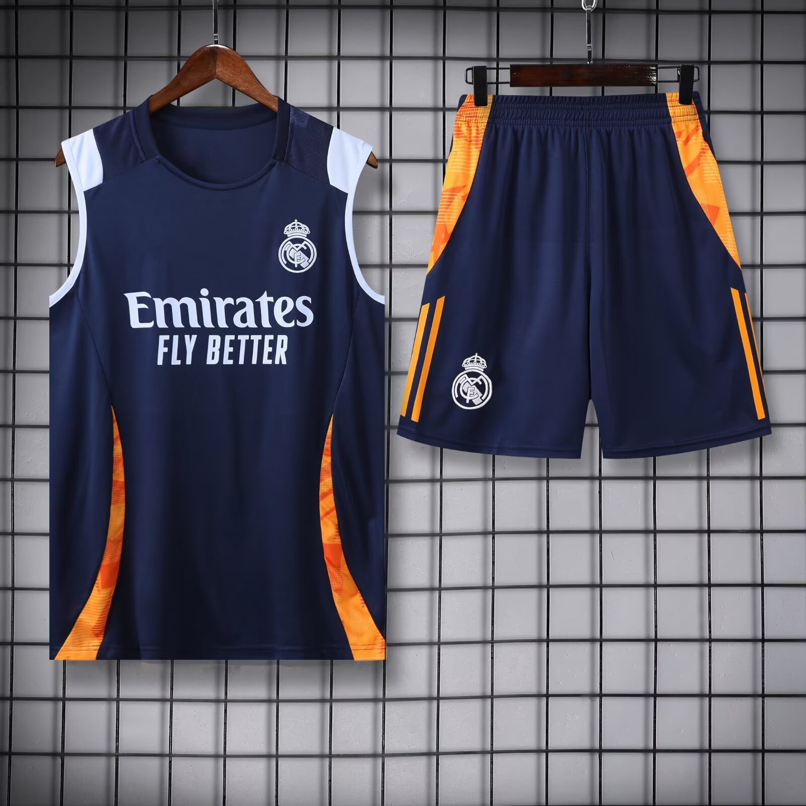 24-25 시즌 레알 마드리드 저지 경기 전 워밍업 대결 훈련 세트 세트 반팔 조끼 성인 축구 세트스토어 가기