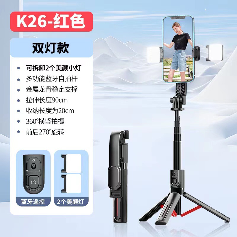 • K26 듀얼 라이트(90CM+듀얼 필 라이트+블루투스 리모콘+알루미늄 합금 튜브+금속 용골 브래킷)