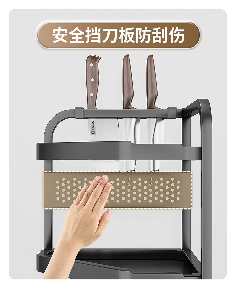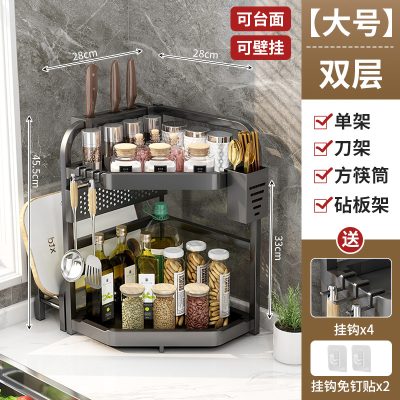 • 칼 홀더, 젓가락 꽂이, 도마 홀더가 포함된 우아한 검정색 2단 대형 사이즈