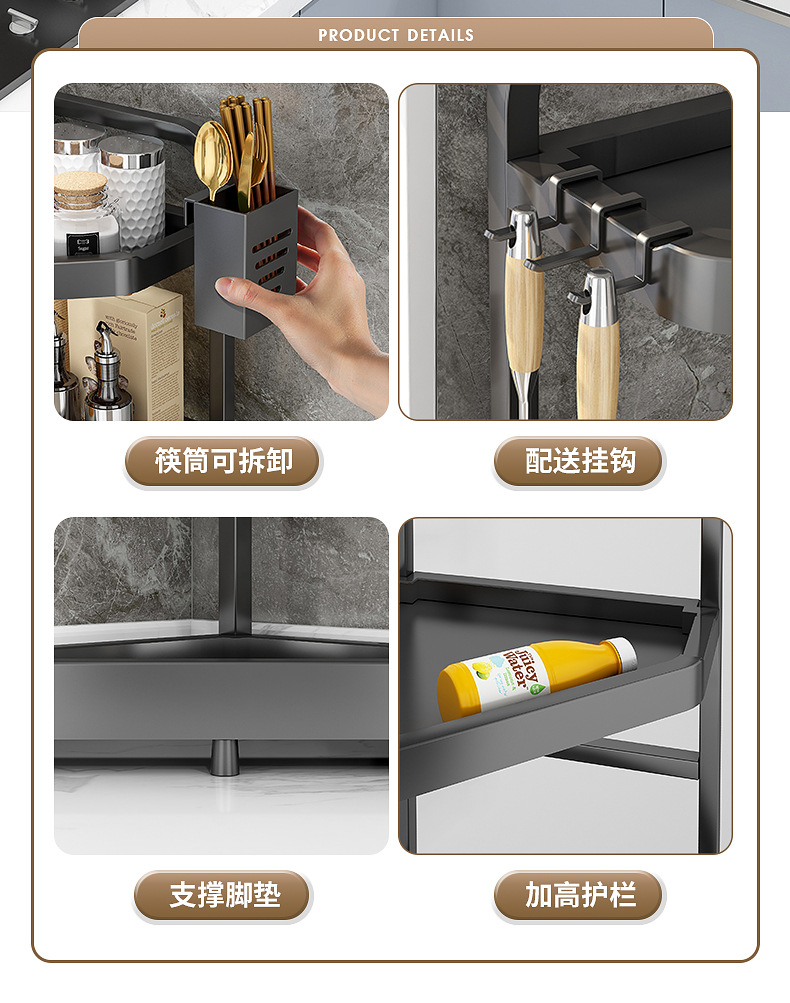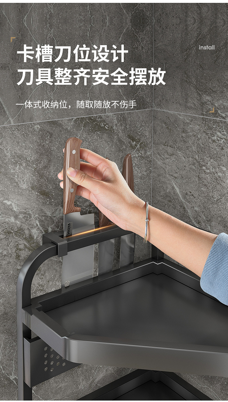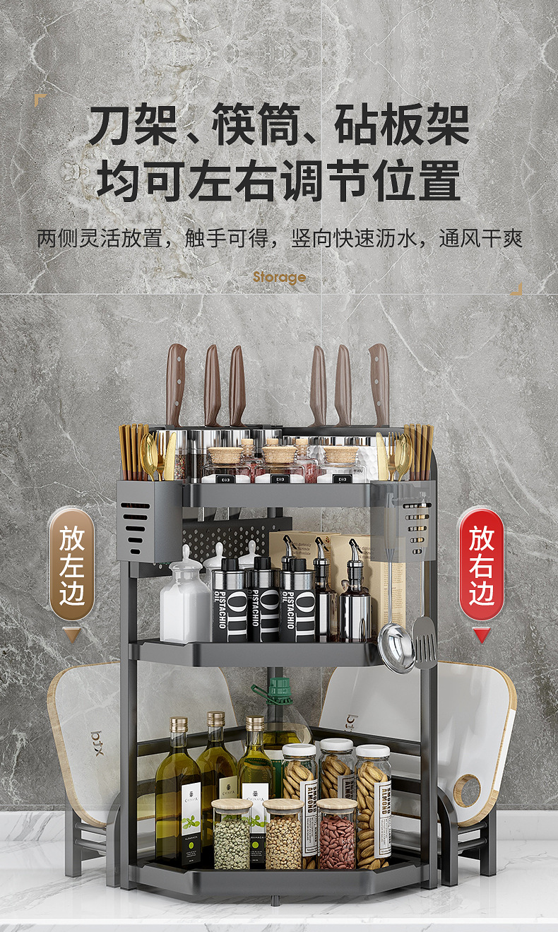 • 칼 홀더, 젓가락 꽂이, 도마 홀더가 포함된 우아한 검정색 3단 대형 사이즈