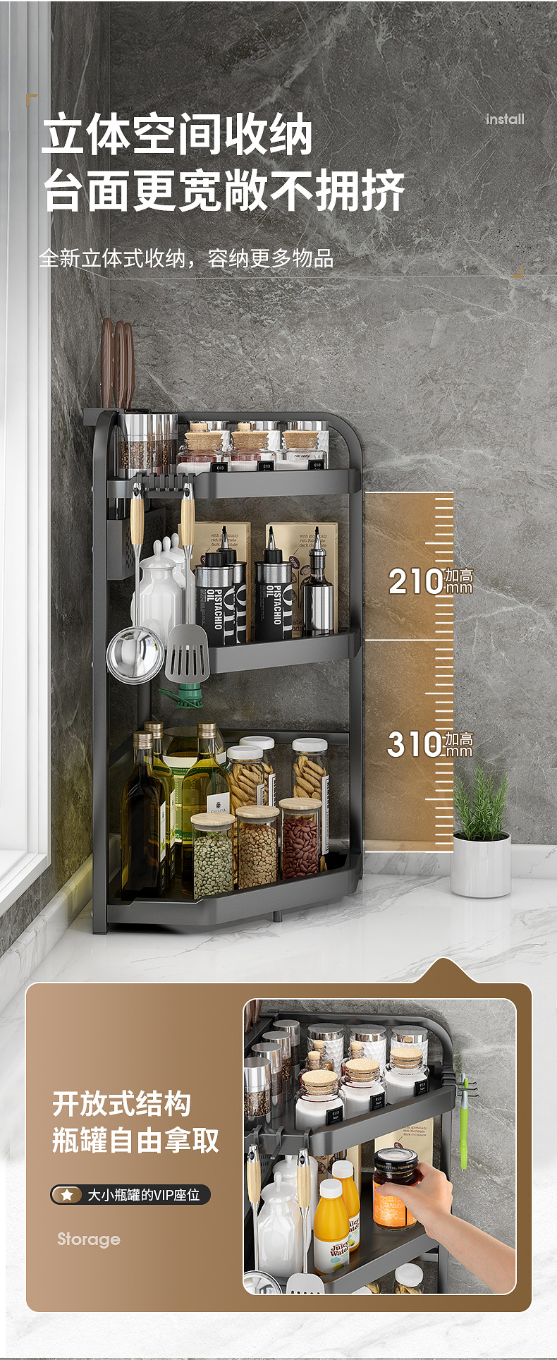 주방 조미료 코너 랙 스토리지 랙 스테인레스 스틸 스토리지 랙 카운터 탑 나이프 랙 젓가락 펀치 프리스토어 가기