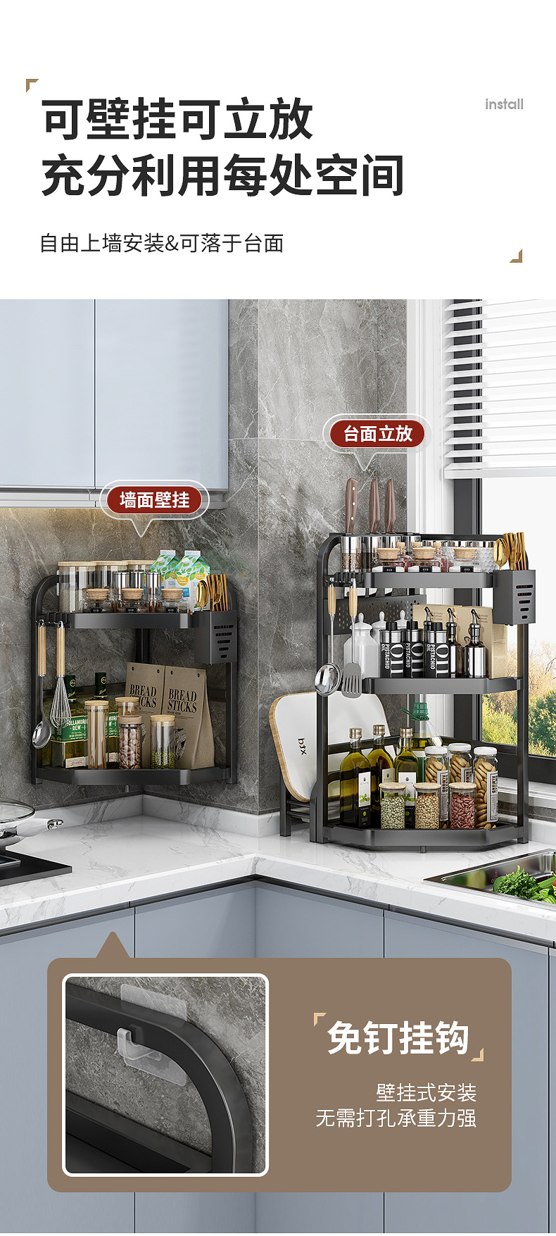 주방 조미료 코너 랙 스토리지 랙 스테인레스 스틸 스토리지 랙 카운터 탑 나이프 랙 젓가락 펀치 프리