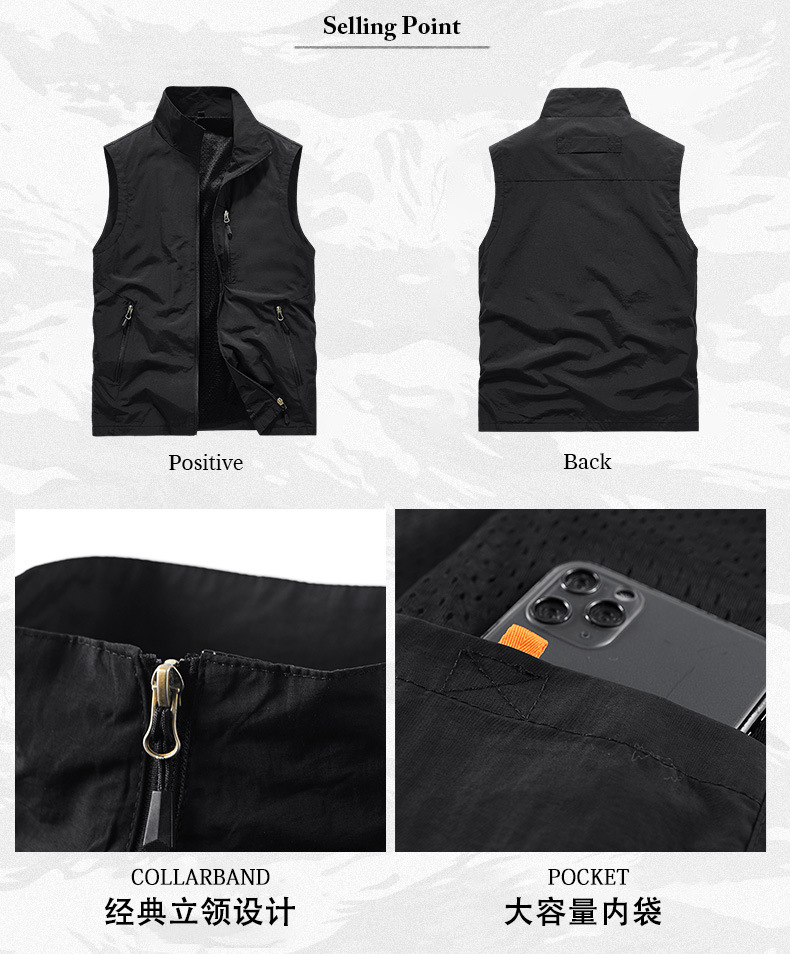 봄과 가을 야외 스포츠 조끼 남자의 통기성 멀티 포켓 낚시 조끼 등산 사진 조끼 간단한 올 매치 재킷스토어 가기