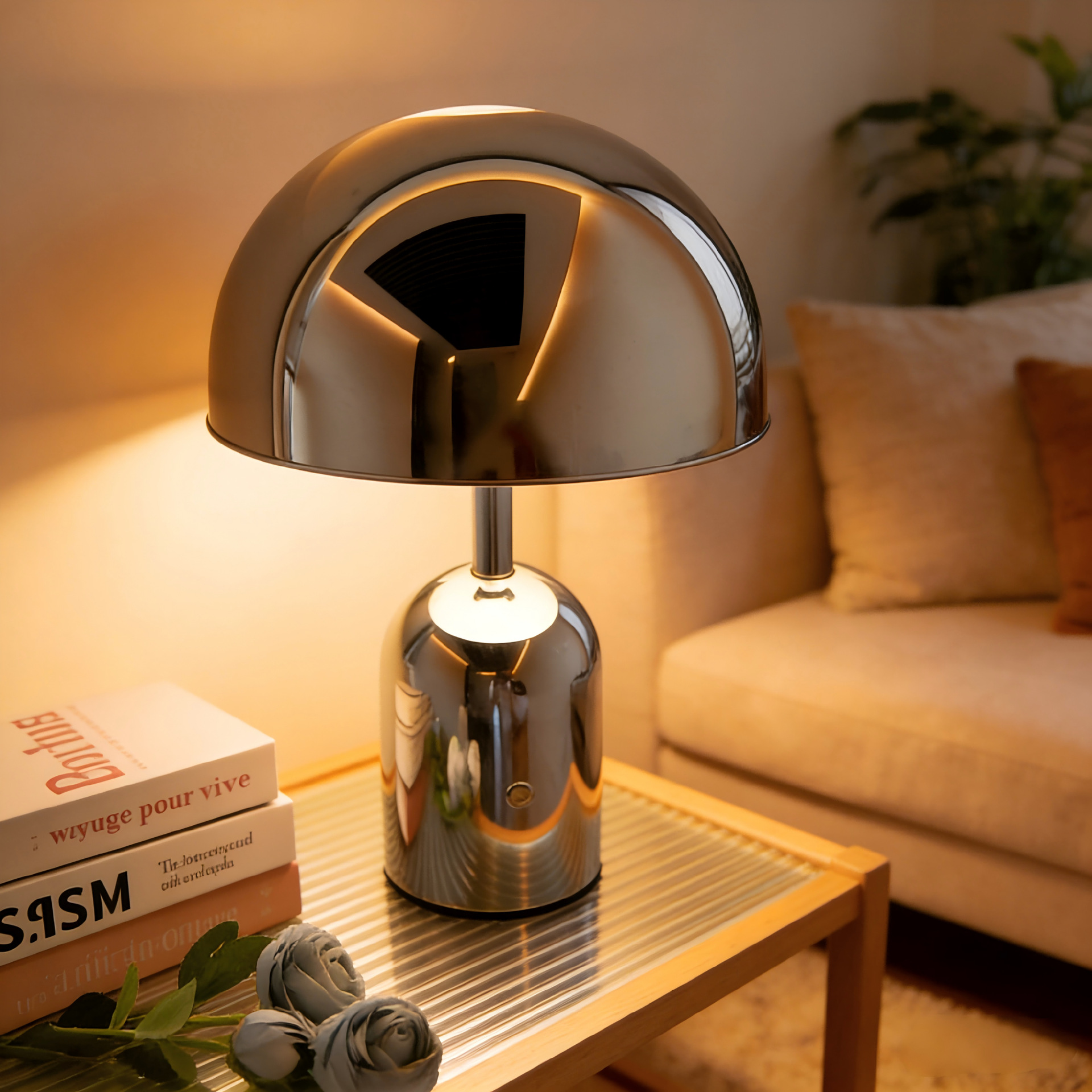 국경을 넘는 LED 고대풍 장식 테이블 램프 거실 침실 레트로 분위기 조명 침대 옆 충전식 금속 버섯 모양 야간등