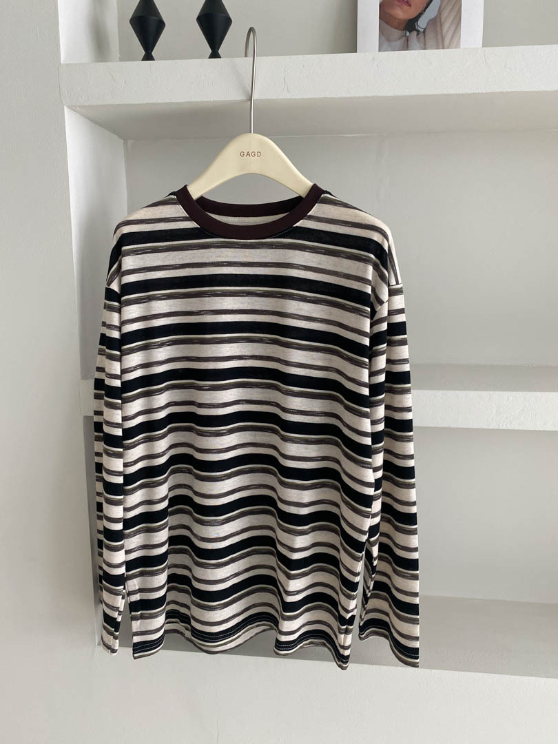 의류 파라다이스 "미우 스트라이프 컨트롤" 원사 염색 자카드 콘트라스트 컬러 스트라이프 긴팔 스웨터 여성의 중간 길이 바닥스토어 가기