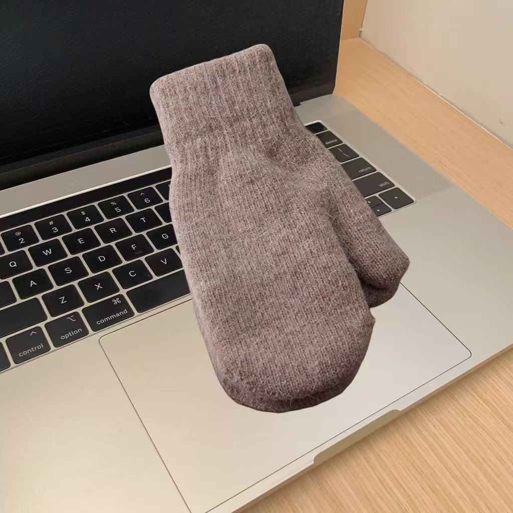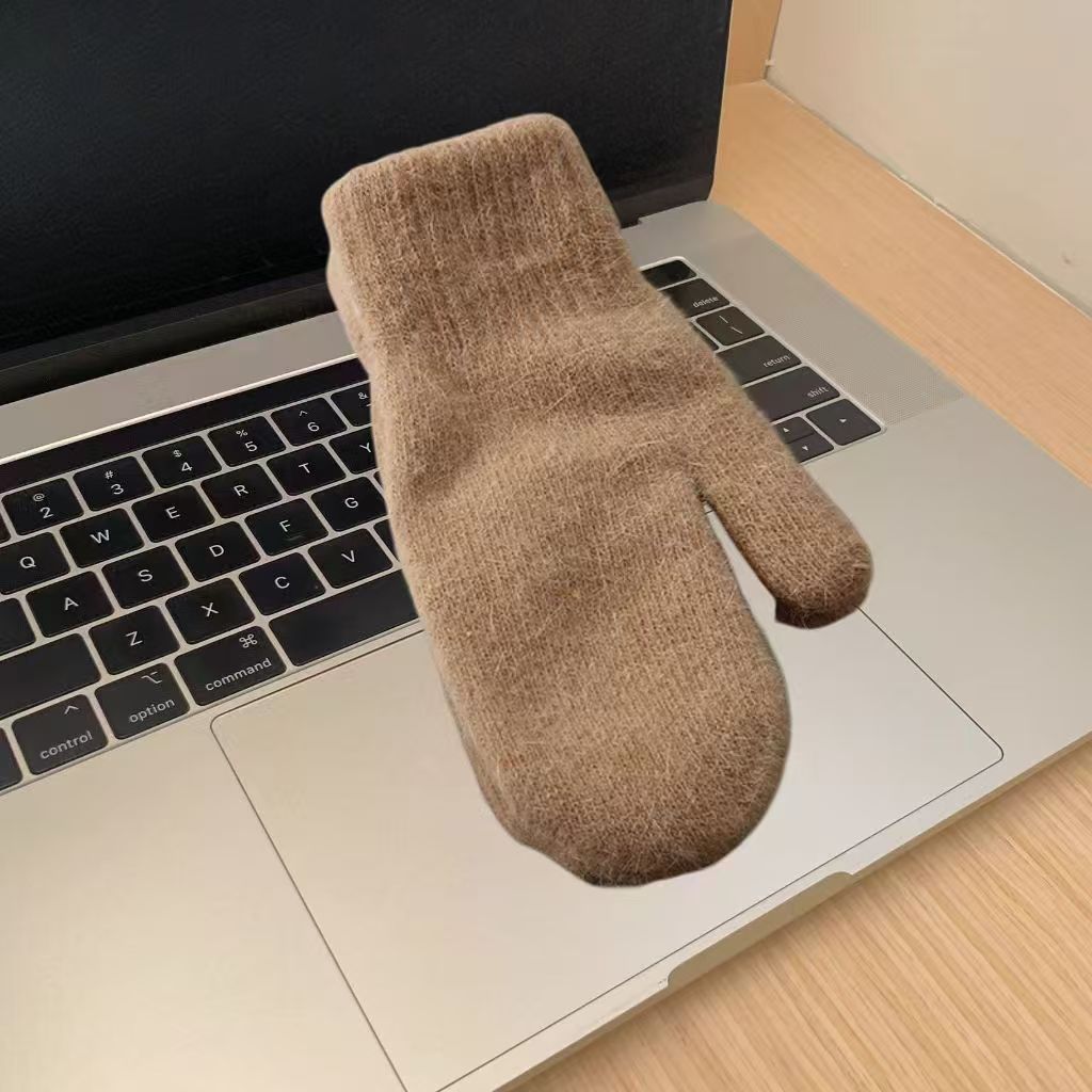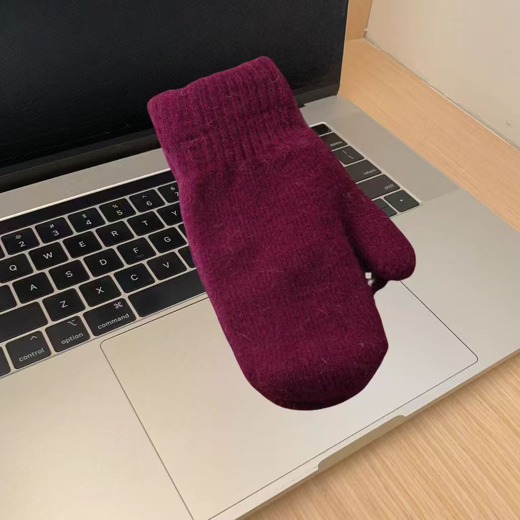 한국식 토끼 모피 장갑 여성 올매치 솔리드 컬러 울 기모 두꺼운 겨울 따뜻한 니트 장갑 커플