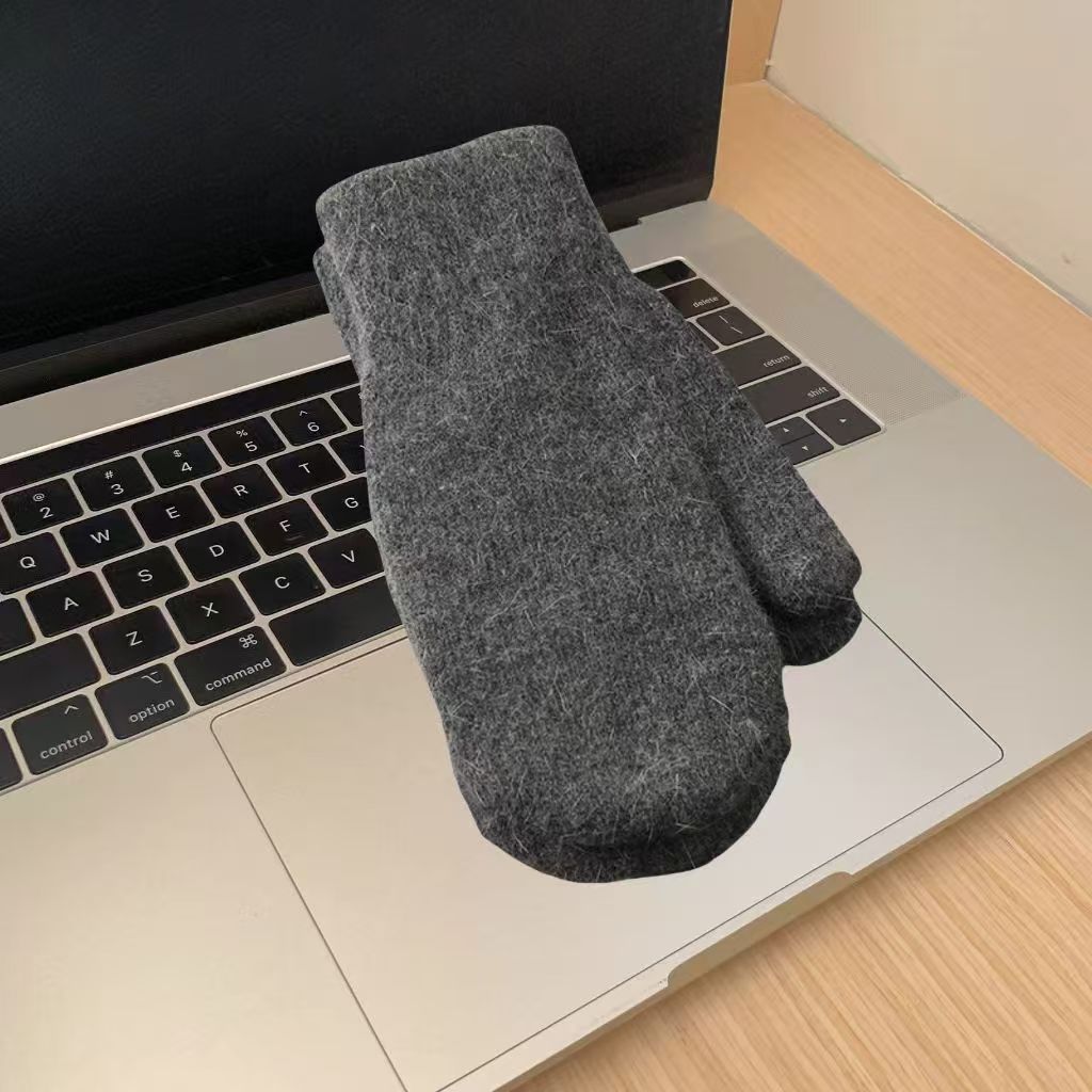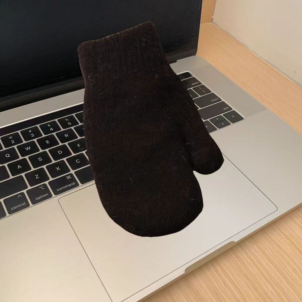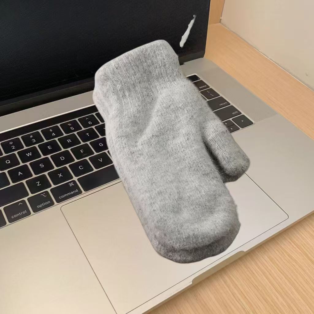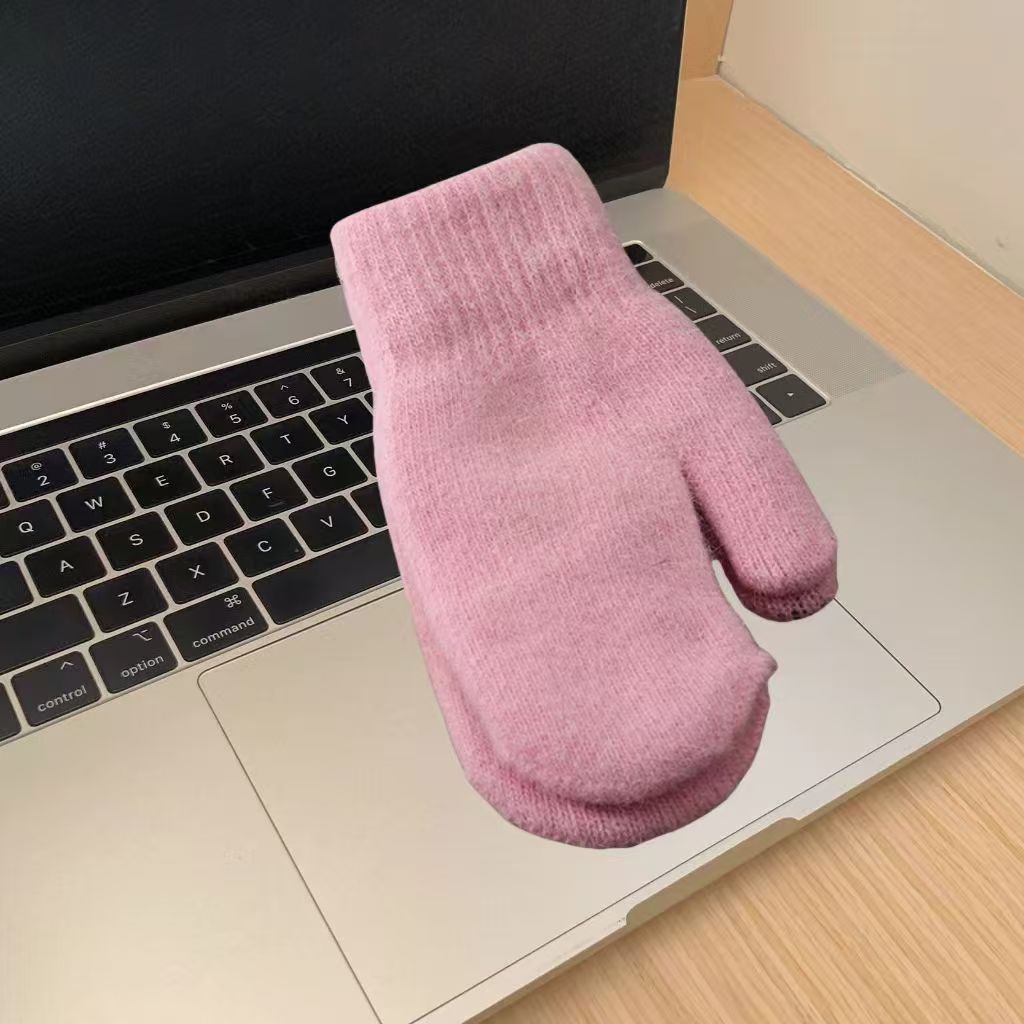 한국식 토끼 모피 장갑 여성 올매치 솔리드 컬러 울 기모 두꺼운 겨울 따뜻한 니트 장갑 커플