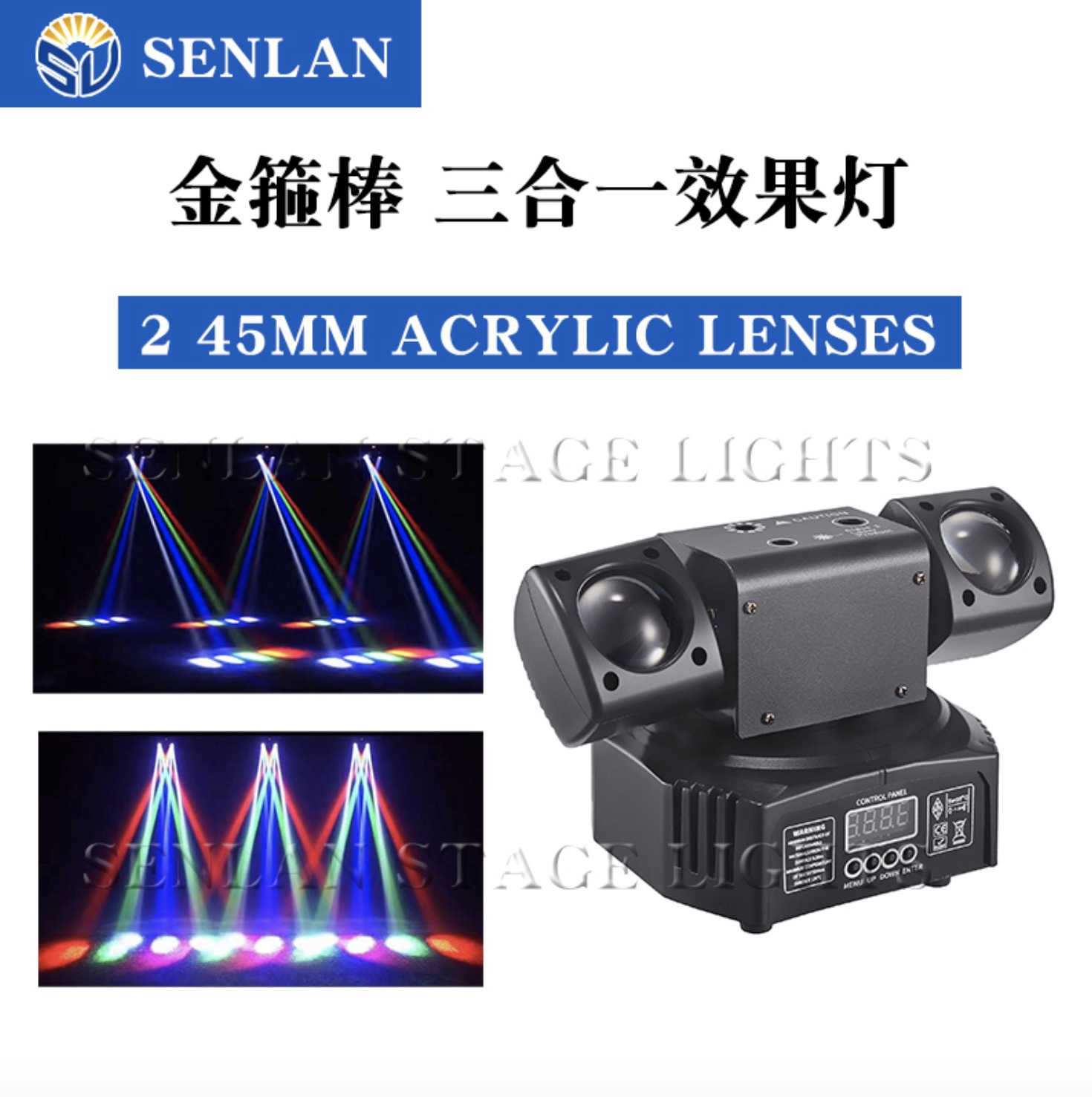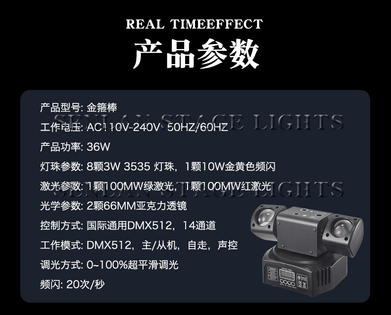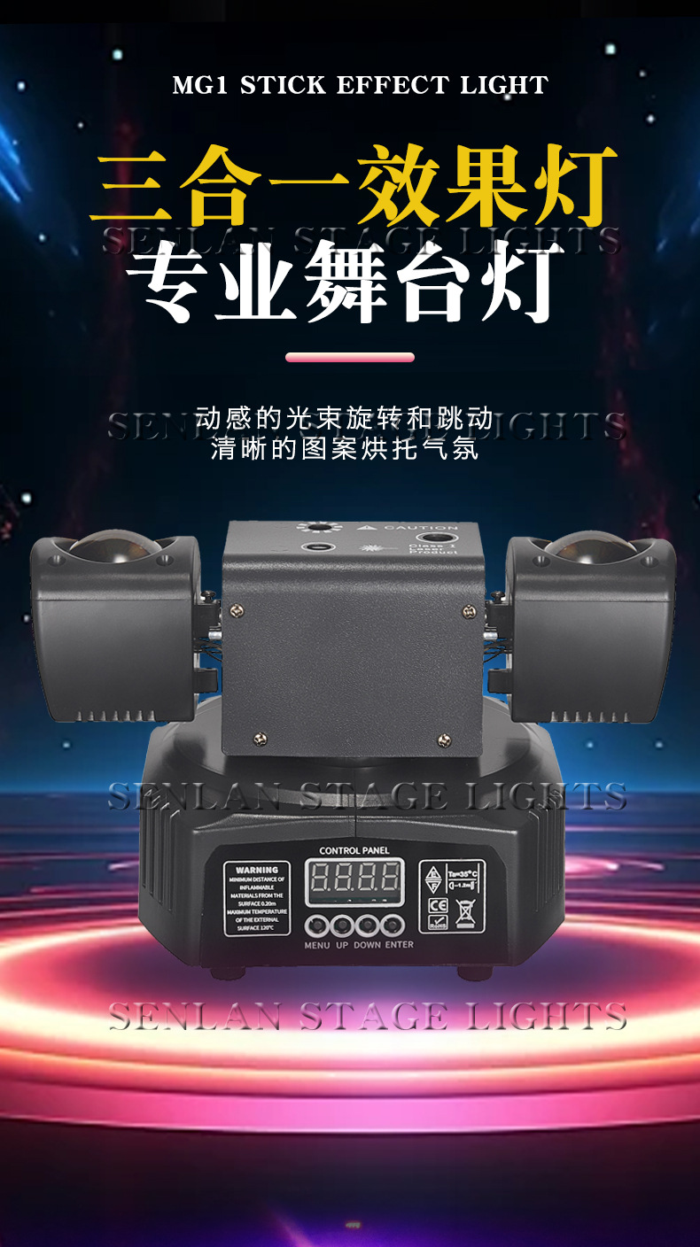 SENLAN 크로스보더 골든 로드 3-in-1 효과 조명 리모컨 LED 무대 조명 패턴 회전 빔