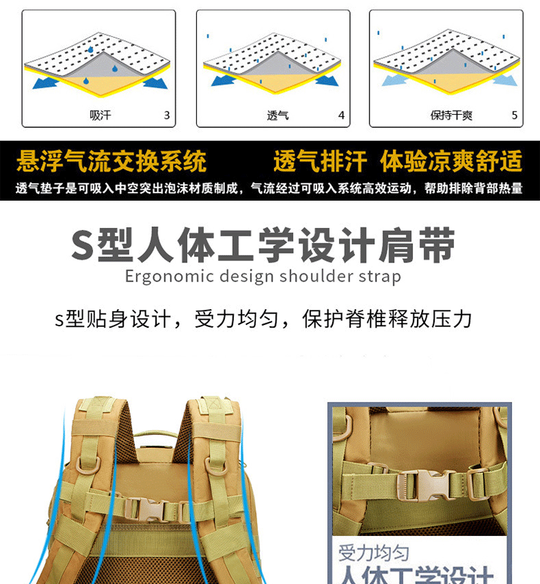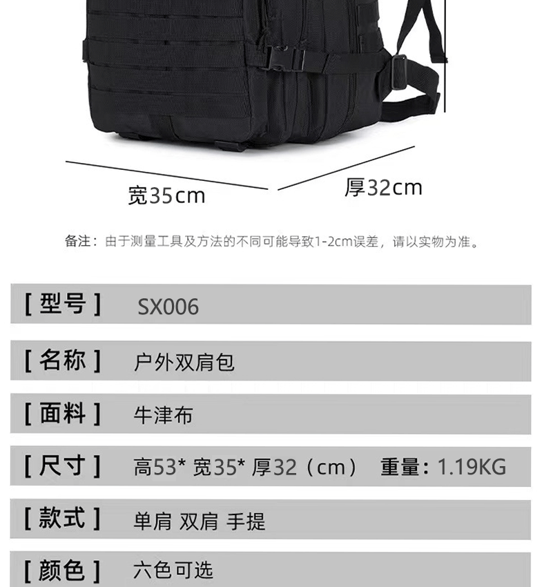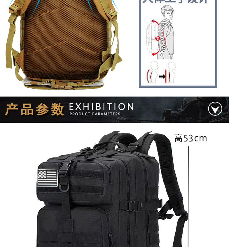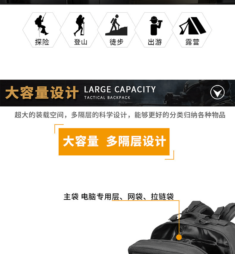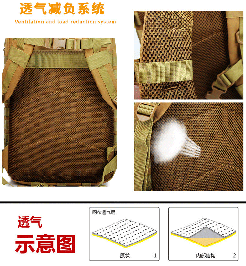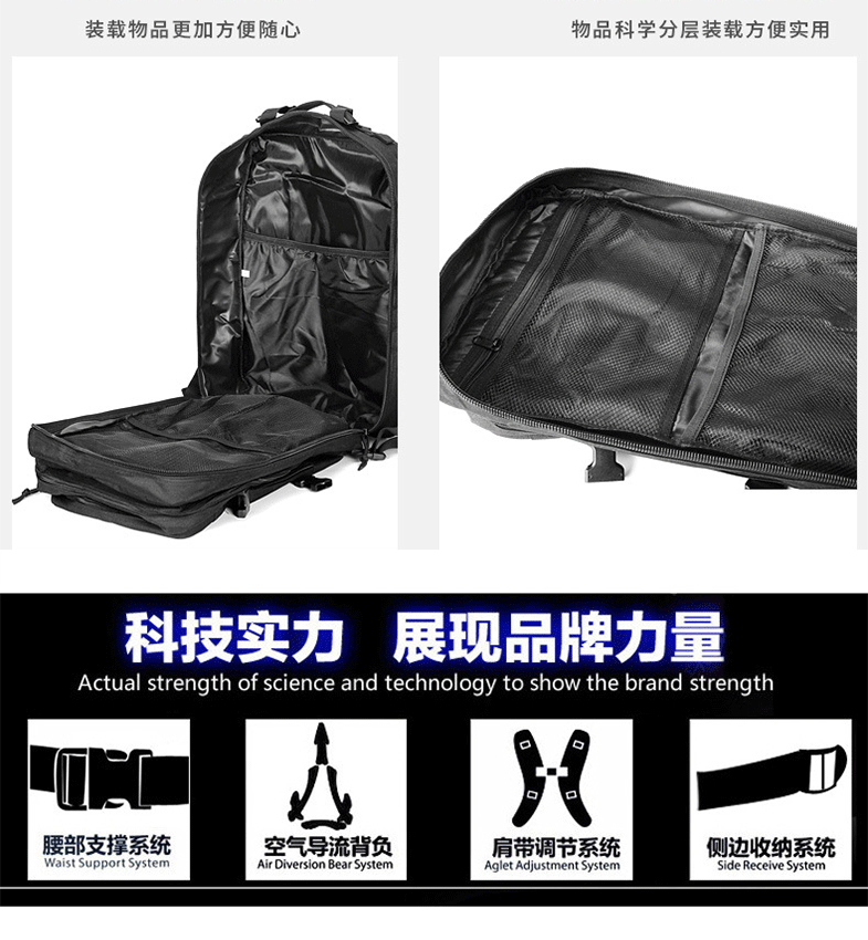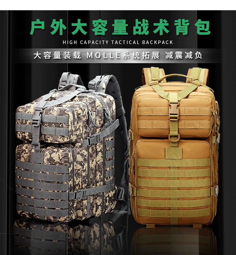 국경 간 전술 배낭 야외 3P 스포츠 여행 하이킹 등산 배낭 군사 위장 대용량 돌격 배낭