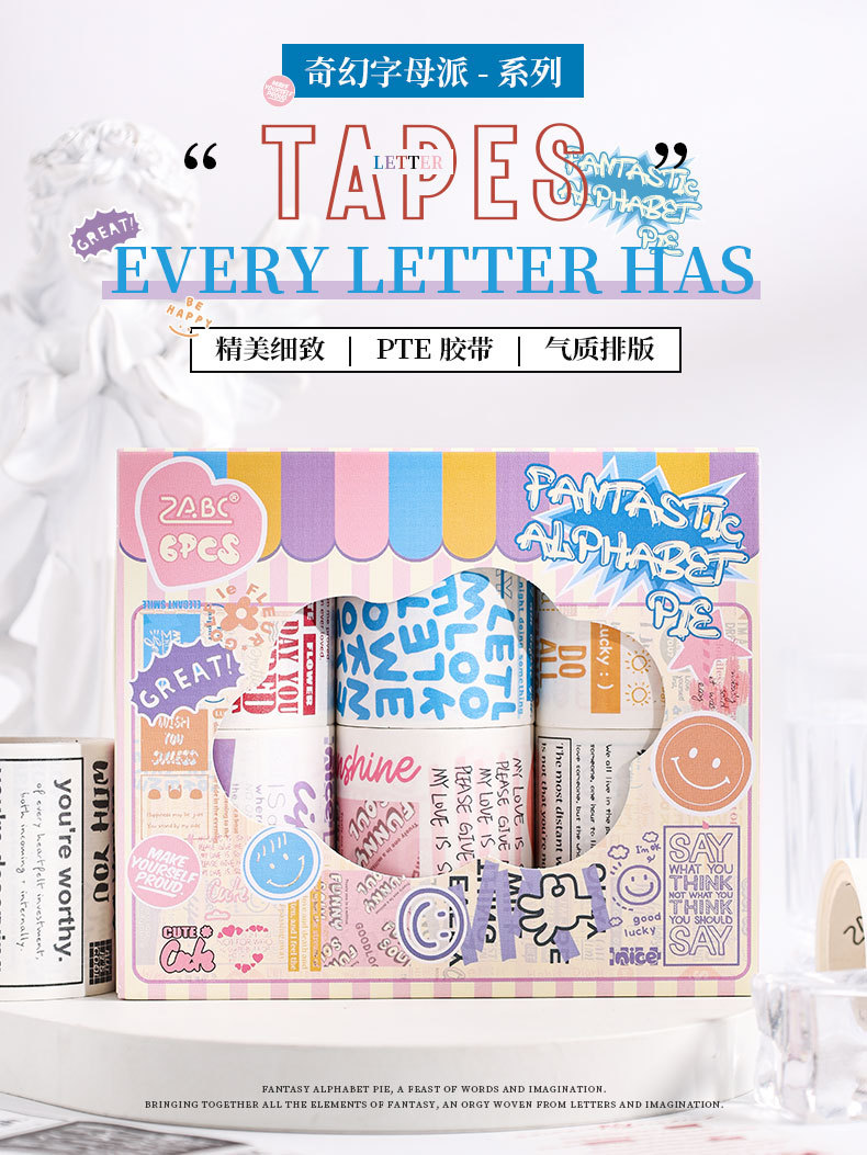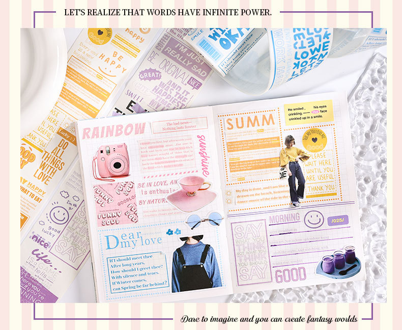 판타지 편지 시리즈 핸드북 및 종이 테이프 세트 상자 diy 핸드북 일기 스티커 국경 영어 풍경 테이프스토어 가기