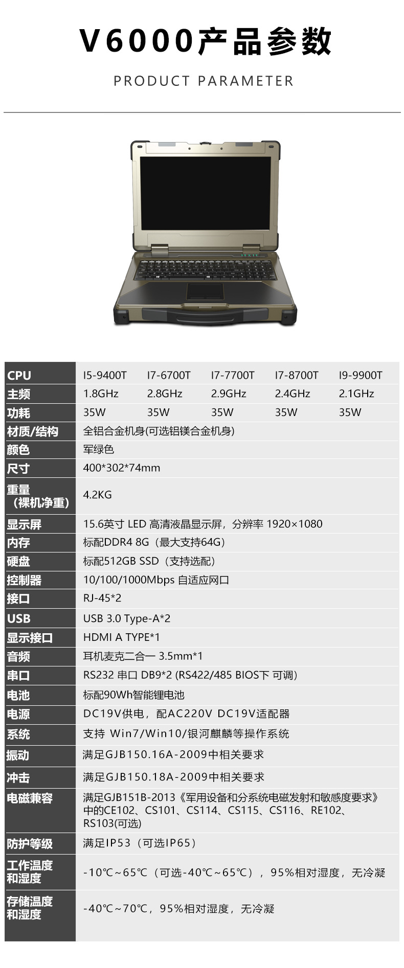 Xinweihan 15.6inch 3중 보호 강화 노트북 군용 산업용 컴퓨터 휴대용 모바일 워크스테이션 컴퓨터