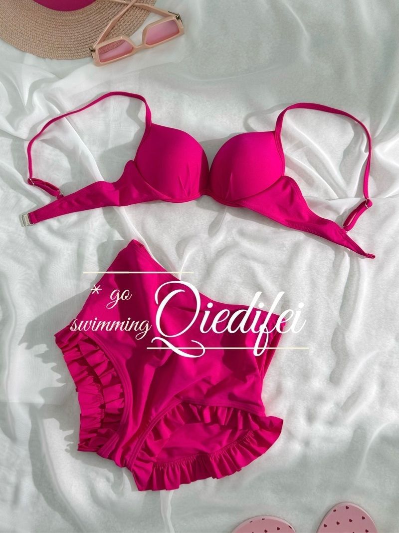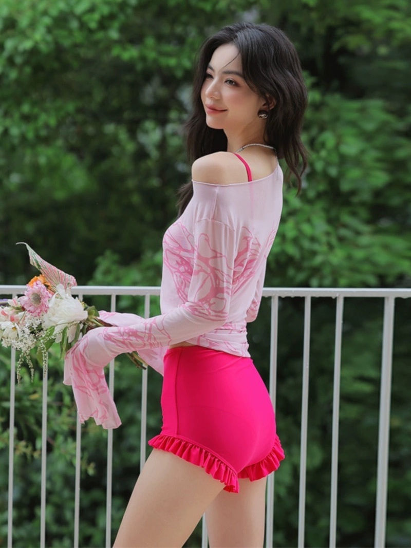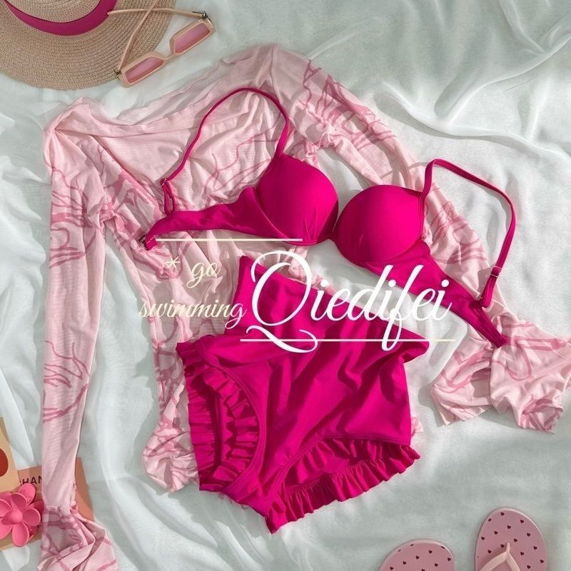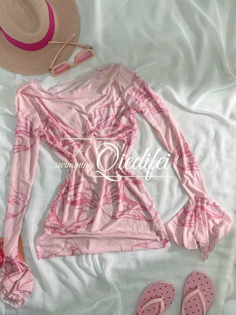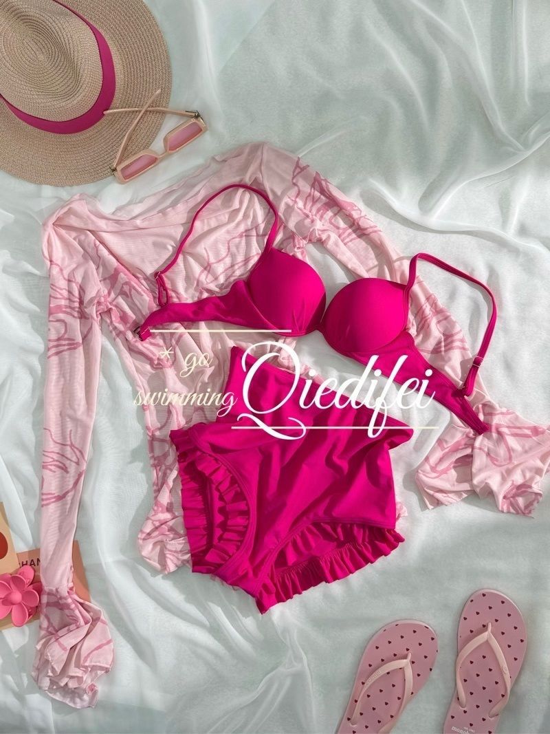 "Sweet Girl" 해변 휴가, 비키니 핑크 작은 가슴 푸시 업 블라우스 태양 보호 및 고기 커버 수영복 여성