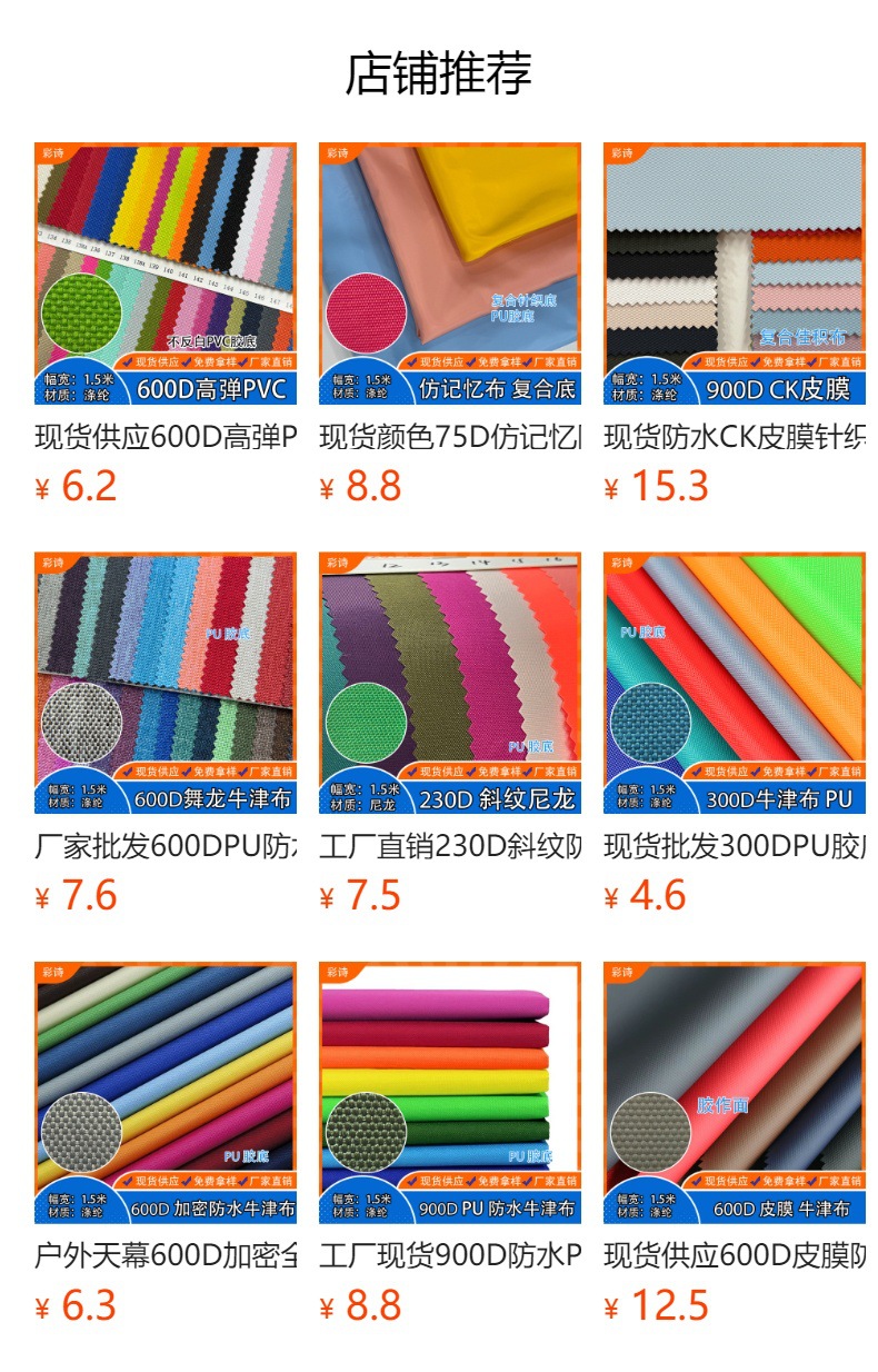 방수 600D 옥스포드 천 PVC 탄성 폴리에스터 직물 두꺼운 내마모성 평직 텐트 가방 직물스토어 가기