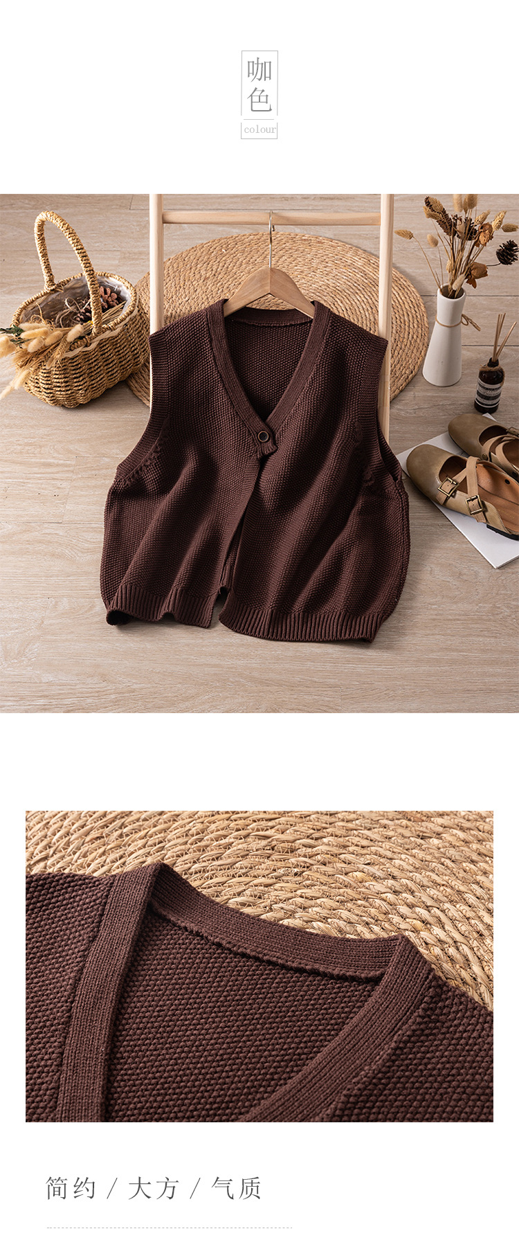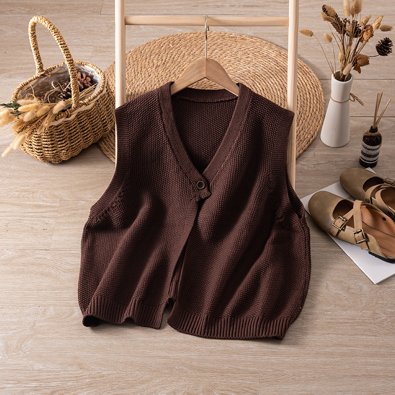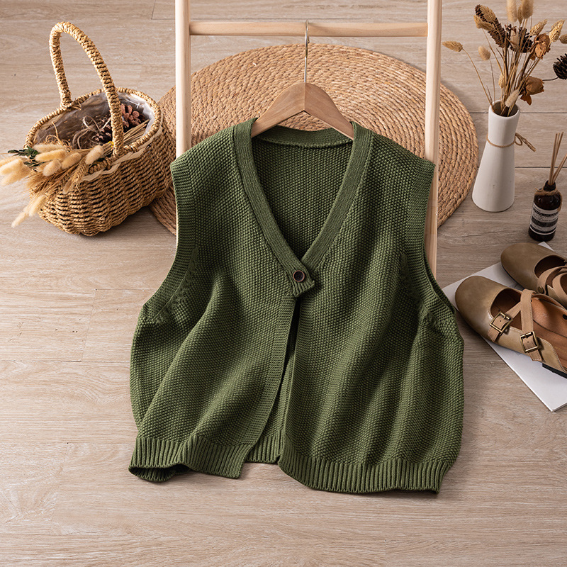 2365 느슨한 게으른 스타일 허리 밴드 민소매 카디건 조끼 유행 예술적 복고풍 디자인 센스 니트 조끼 여성 가을스토어 가기