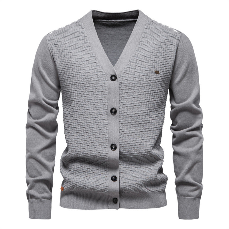 2024 가을과 겨울 새로운 남자 V 넥 니트 스웨터 코트 유럽 사이즈 크로스 보더 카디건 슬림 핏 트렌디 남성용 스웨터 코트