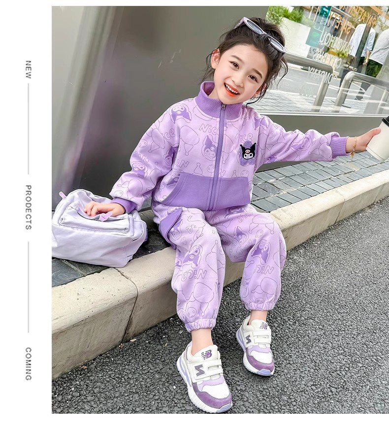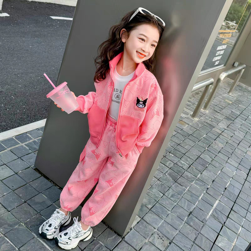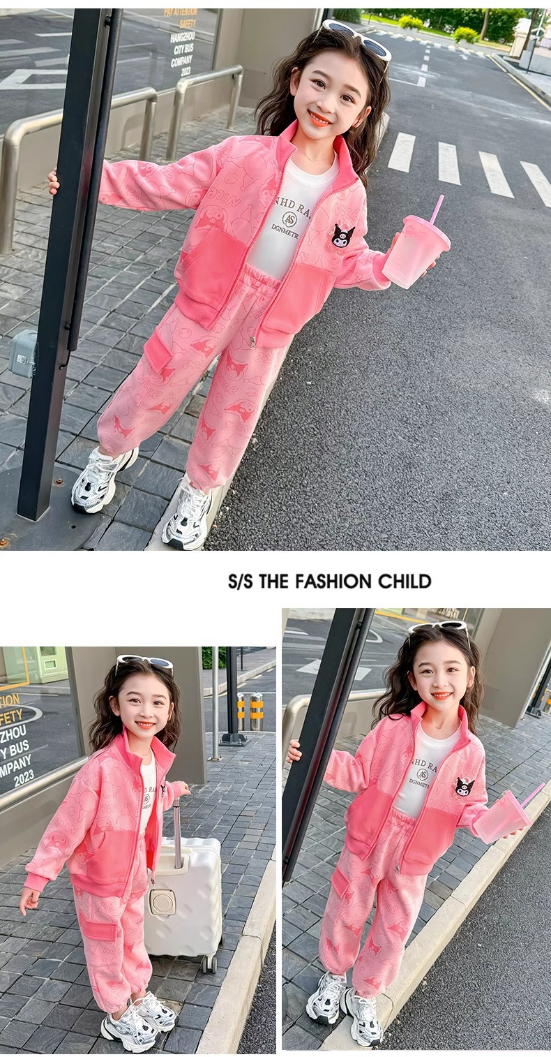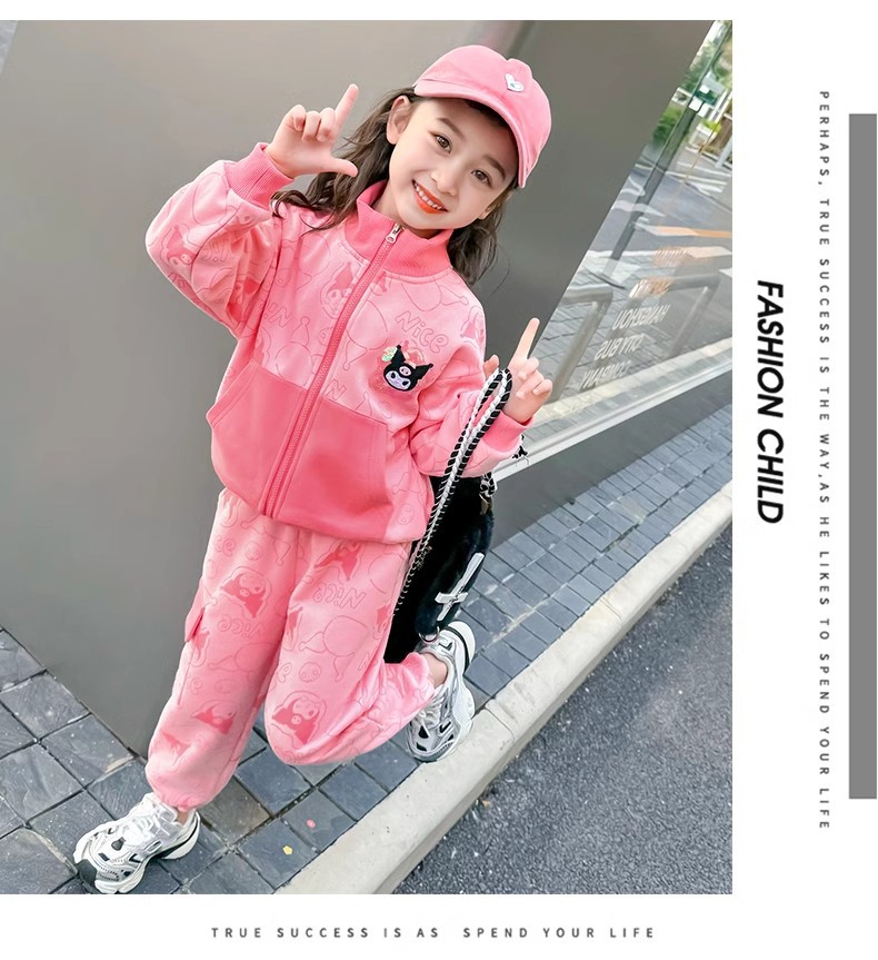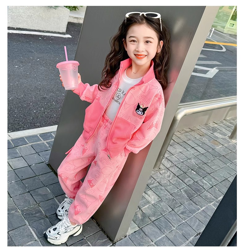 아동복, 여아 가을옷, 여아 정장, 중소형 아동 지퍼 스탠드 칼라 재킷, 캐주얼 바지, 아동 운동복 투피스 세트스토어 가기
