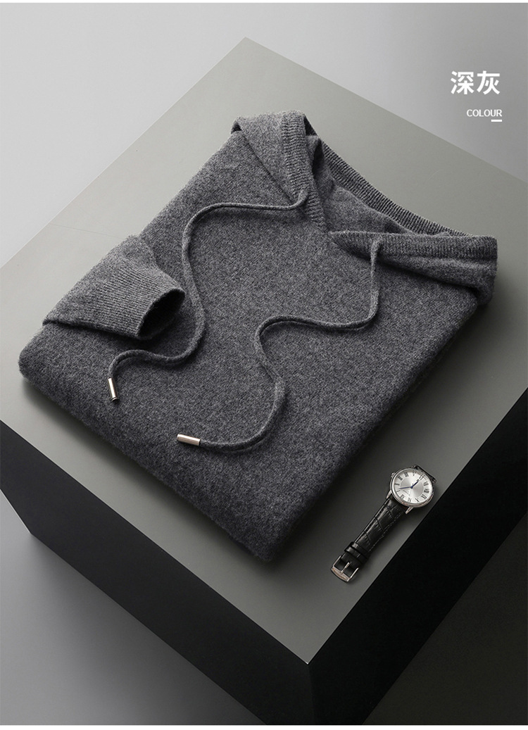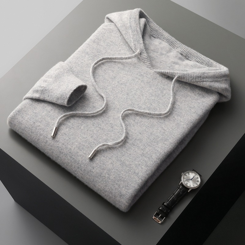 가을과 겨울 캐시미어 스웨터 남자 후디 원활한 캐주얼 후드 스웨터 남자 풀오버 스웨터 솔리드 컬러 니트 베이스 셔츠