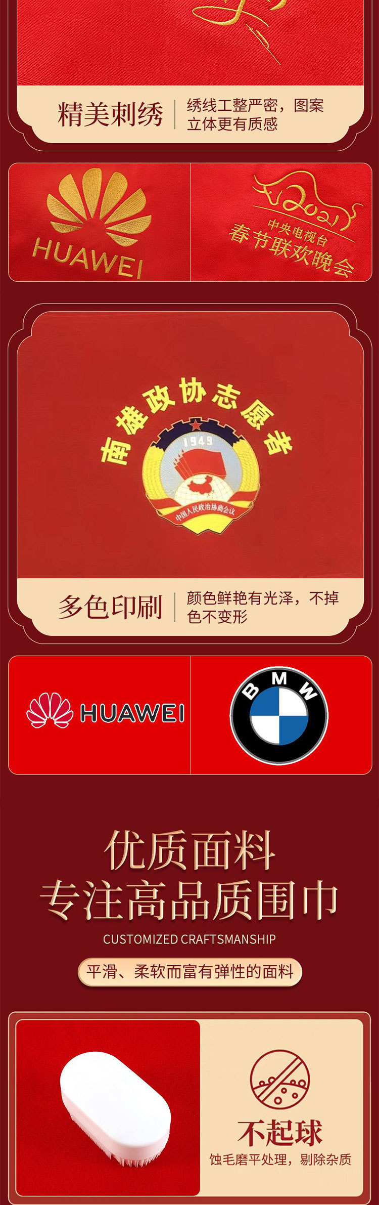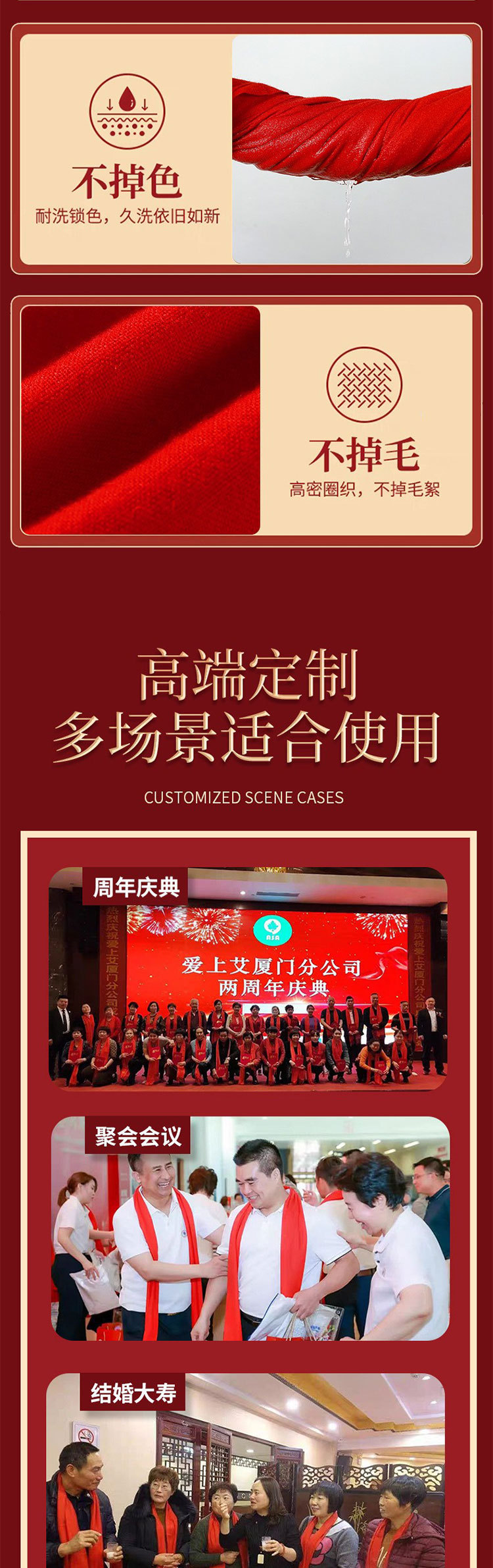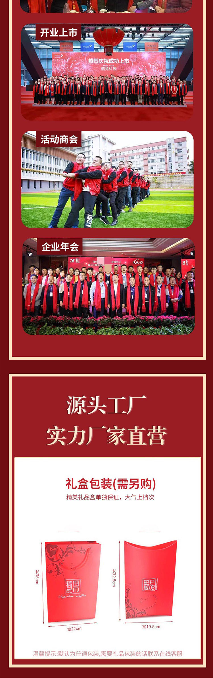 큰 빨간색 연례 회의 스카프 맞춤형 로고 자수 활동 오프닝 파티 인쇄 중국 빨간 스카프 제조 업체 도매스토어 가기