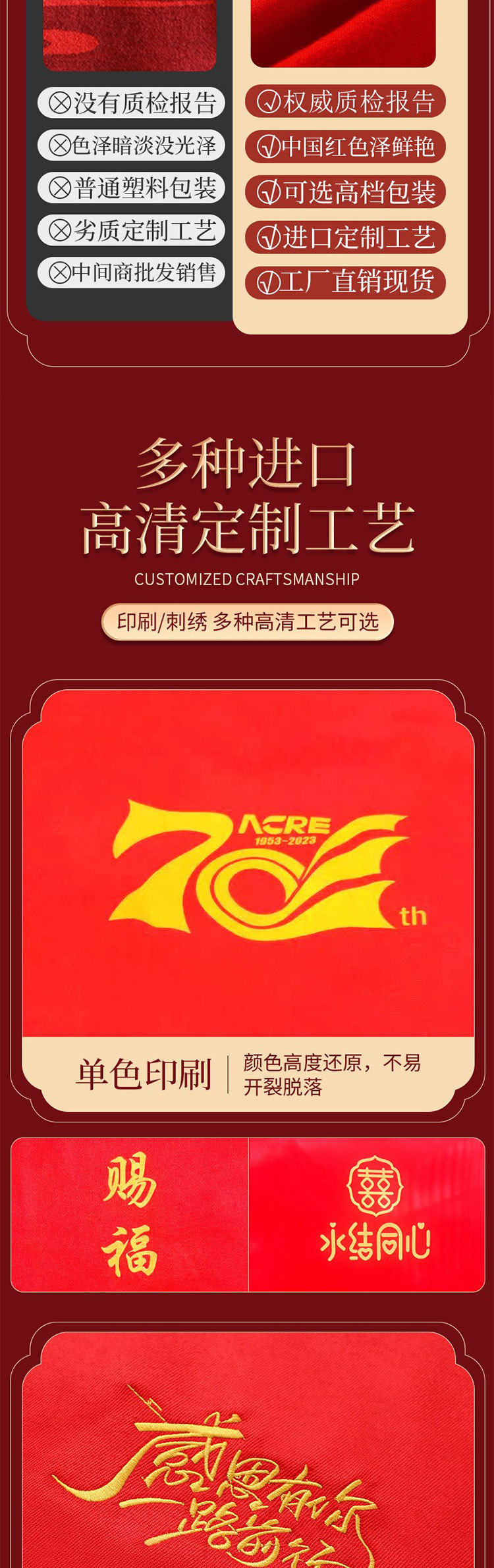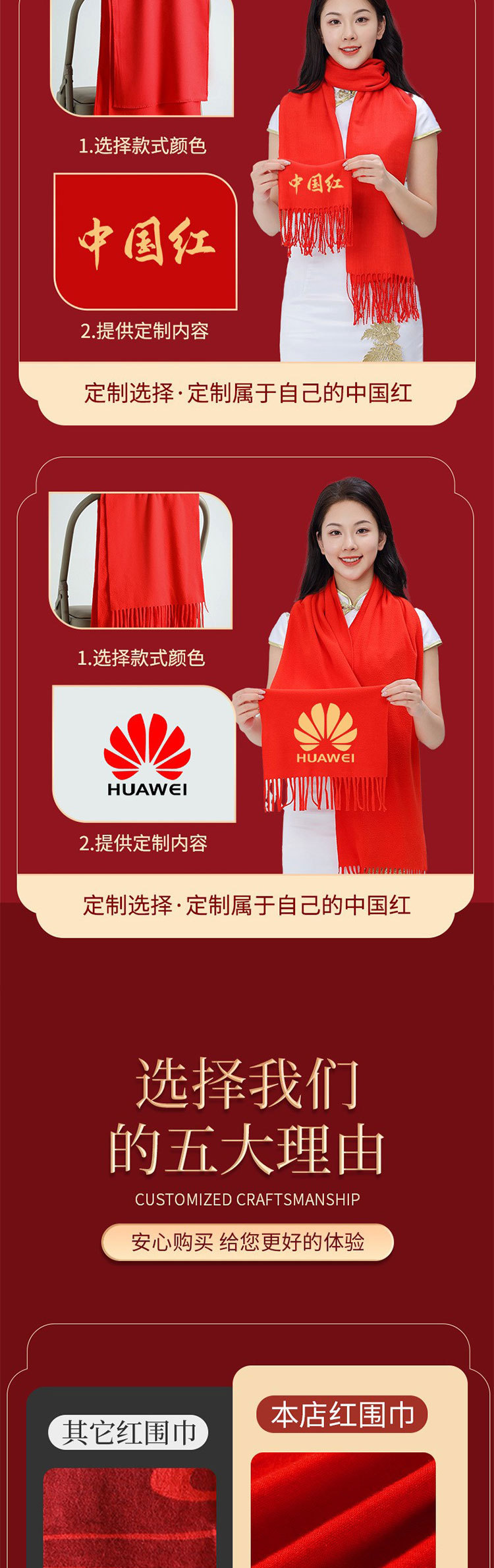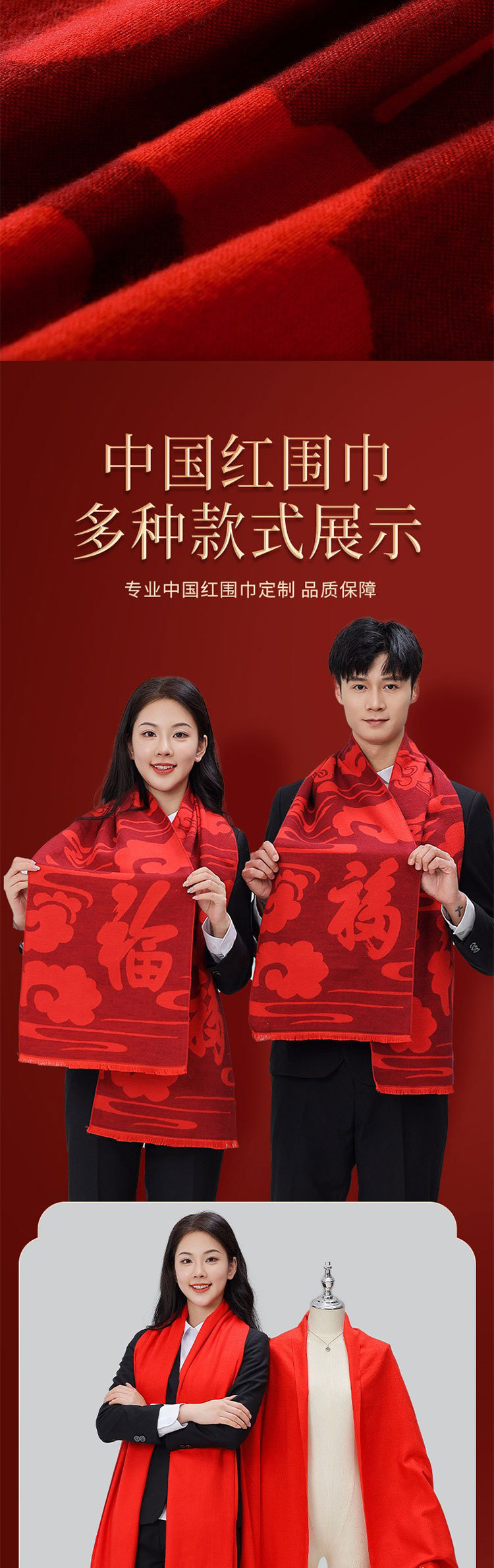 큰 빨간색 연례 회의 스카프 맞춤형 로고 자수 활동 오프닝 파티 인쇄 중국 빨간 스카프 제조 업체 도매스토어 가기
