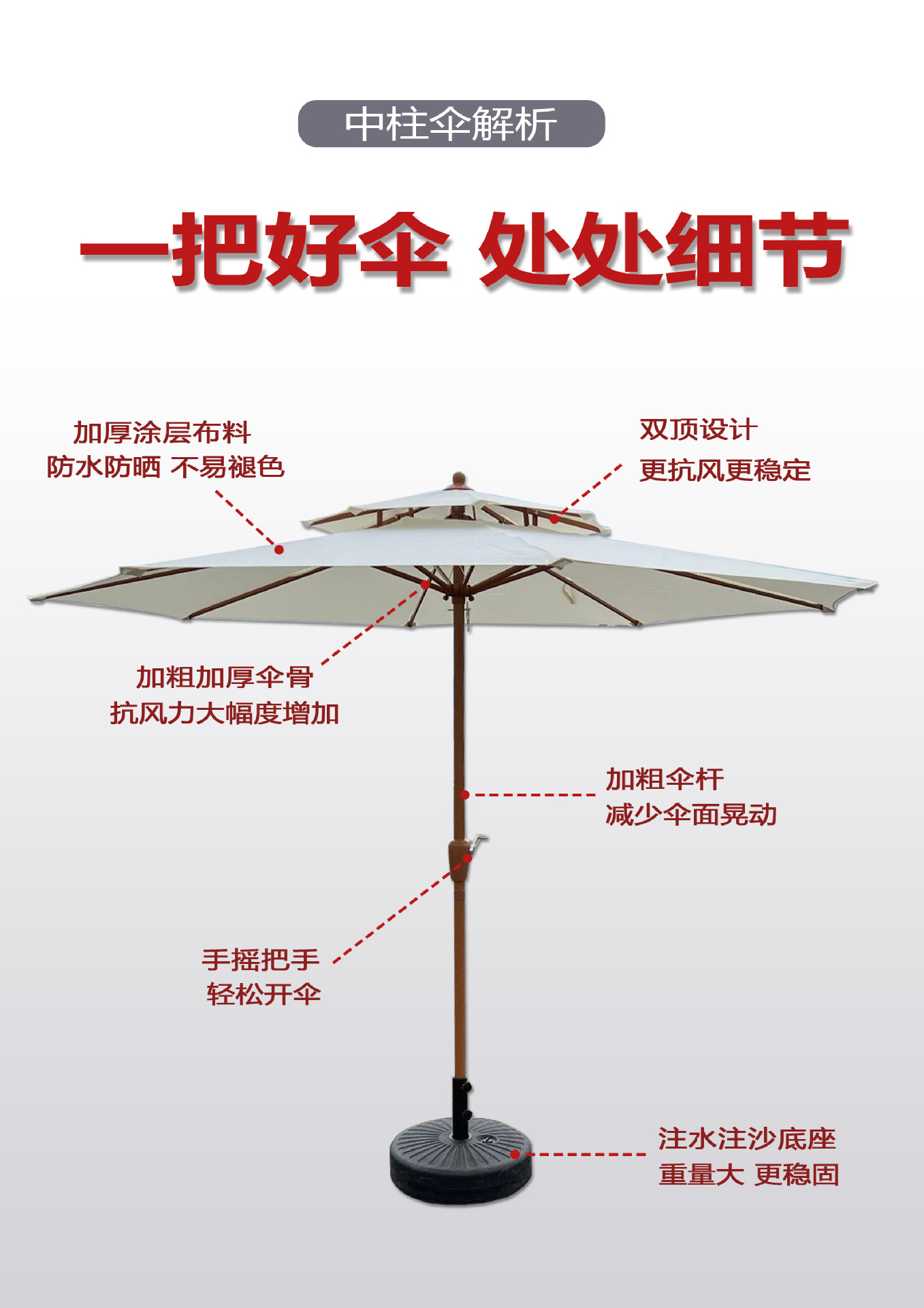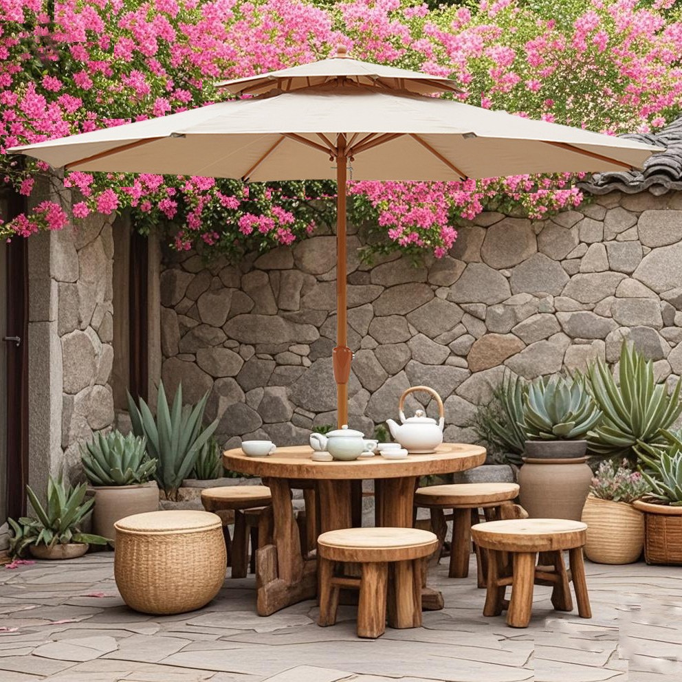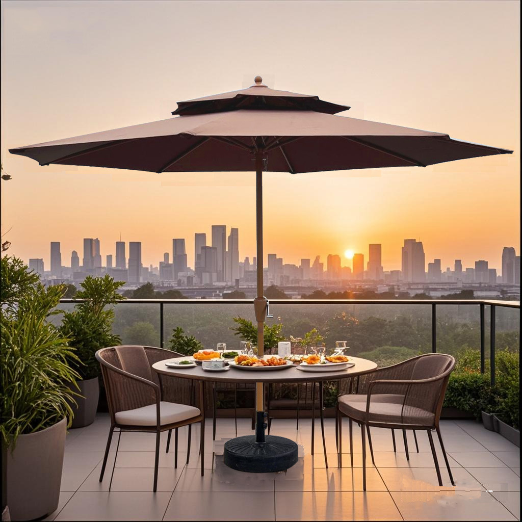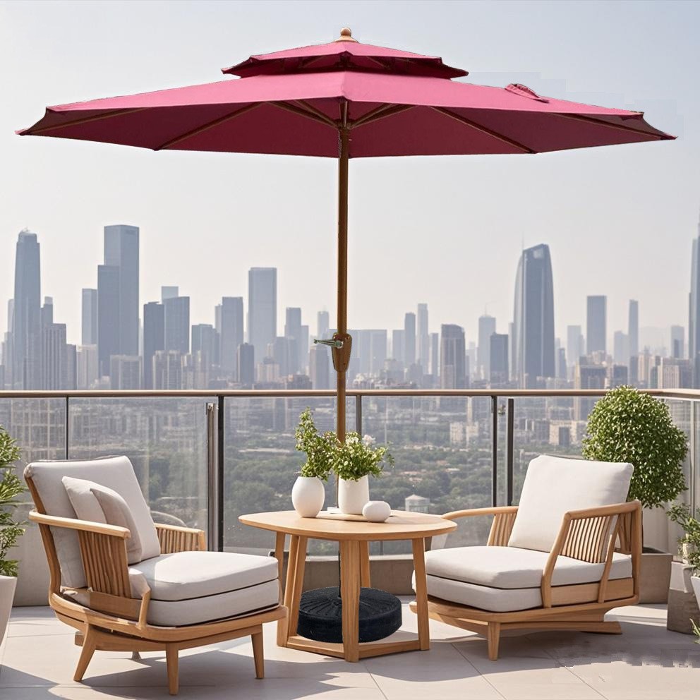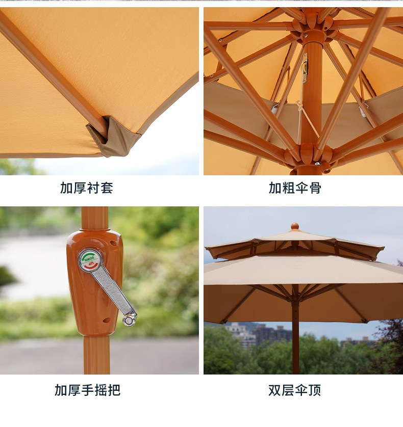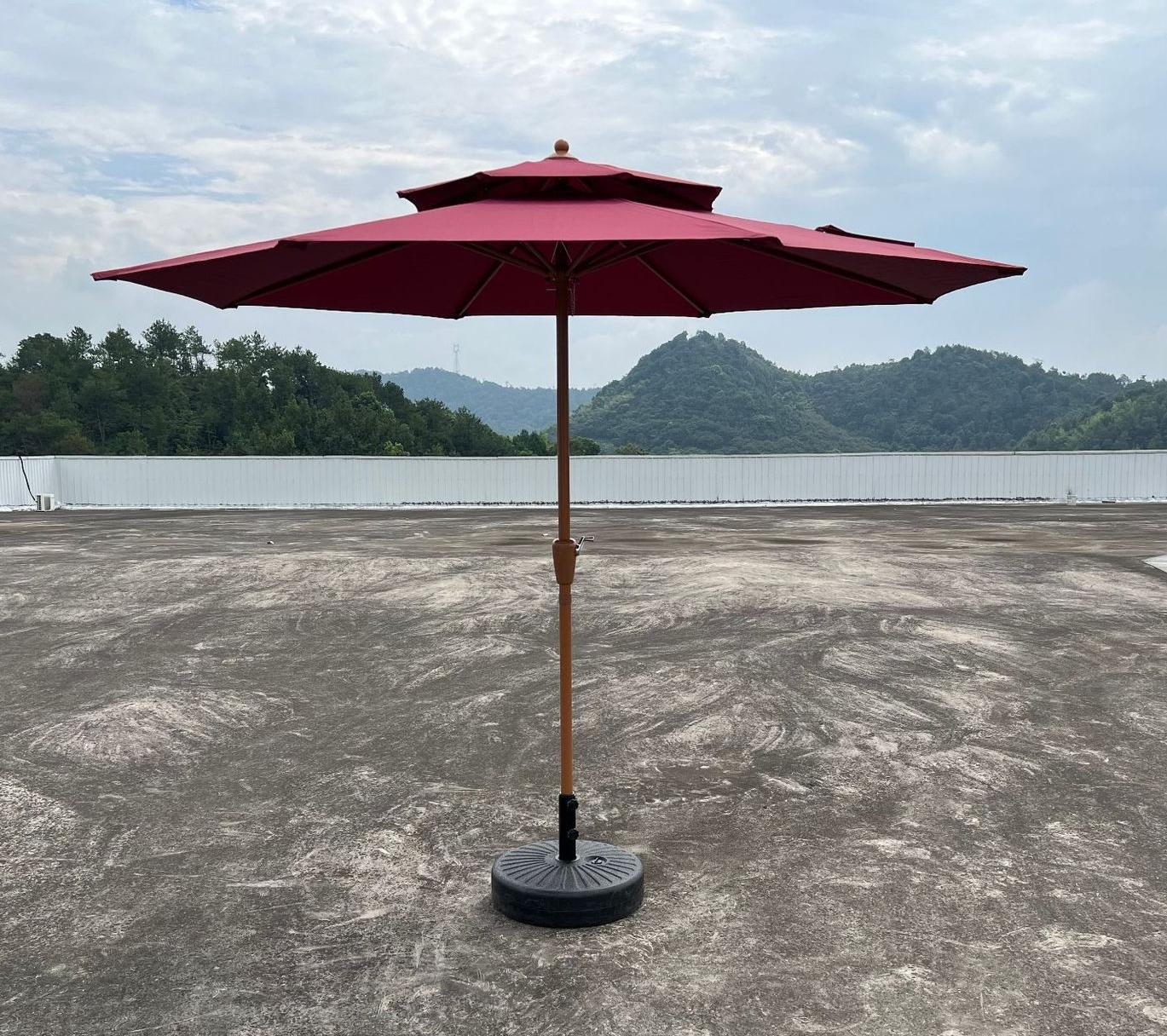 야외용 파라솔, 정원용, 가정용, 레저용, 발코니용, 자외선 차단, 노점용, 캠핑용, 2.7m 이중 지붕 수동식 중앙 기둥 우산, 도매
