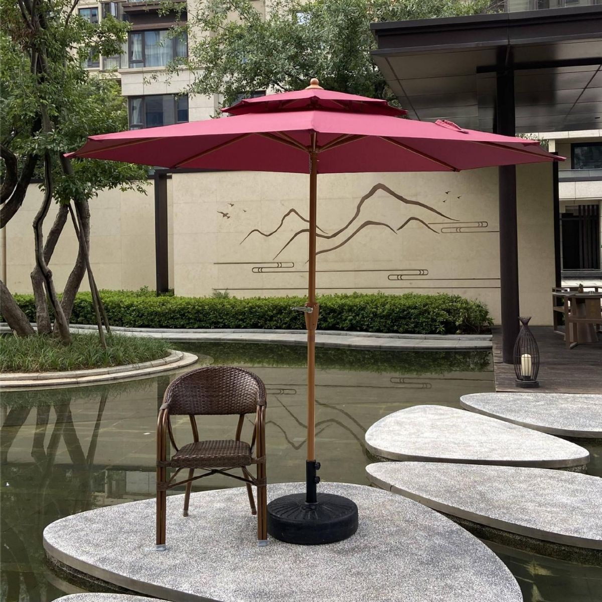 야외용 파라솔, 정원용, 가정용, 레저용, 발코니용, 자외선 차단, 노점용, 캠핑용, 2.7m 이중 지붕 수동식 중앙 기둥 우산, 도매스토어 가기