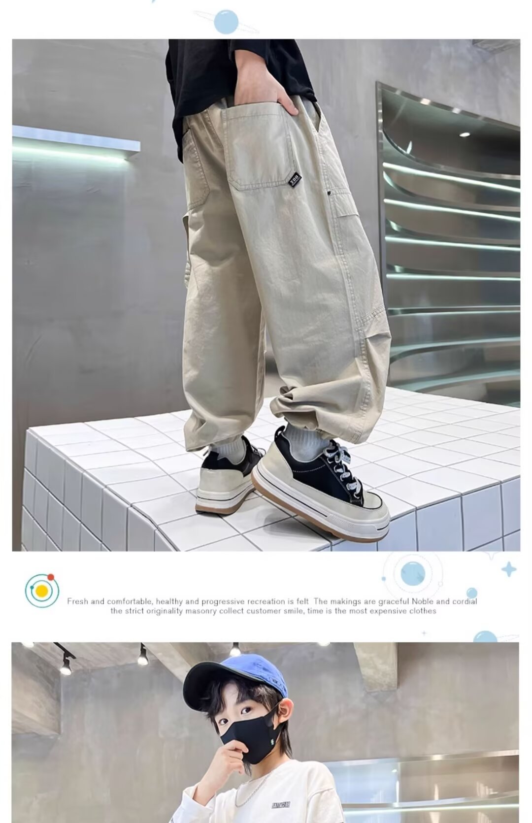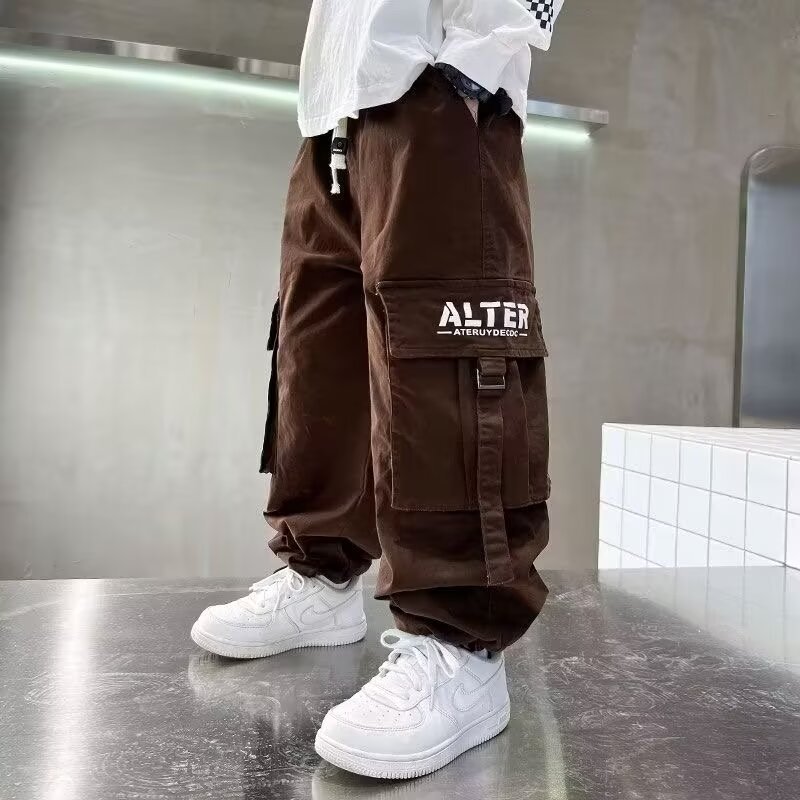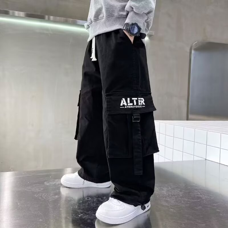 6-12 년 동안 소년 바지 봄과 가을 어린이 스트레이트 캐주얼 바지스토어 가기