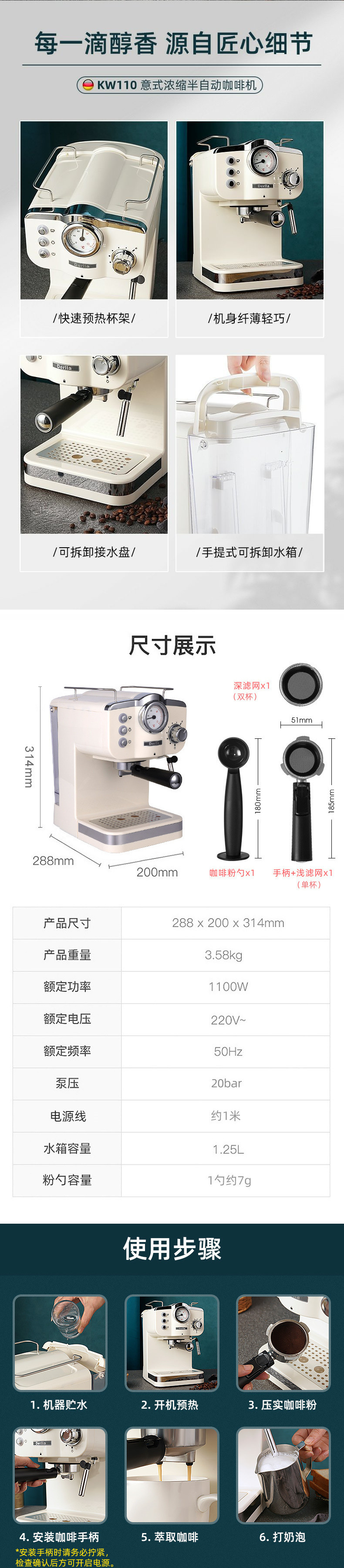 독일 완전 반자동 에스프레소 머신 가정용 소형 우유 거품기 올인원 미니 레트로